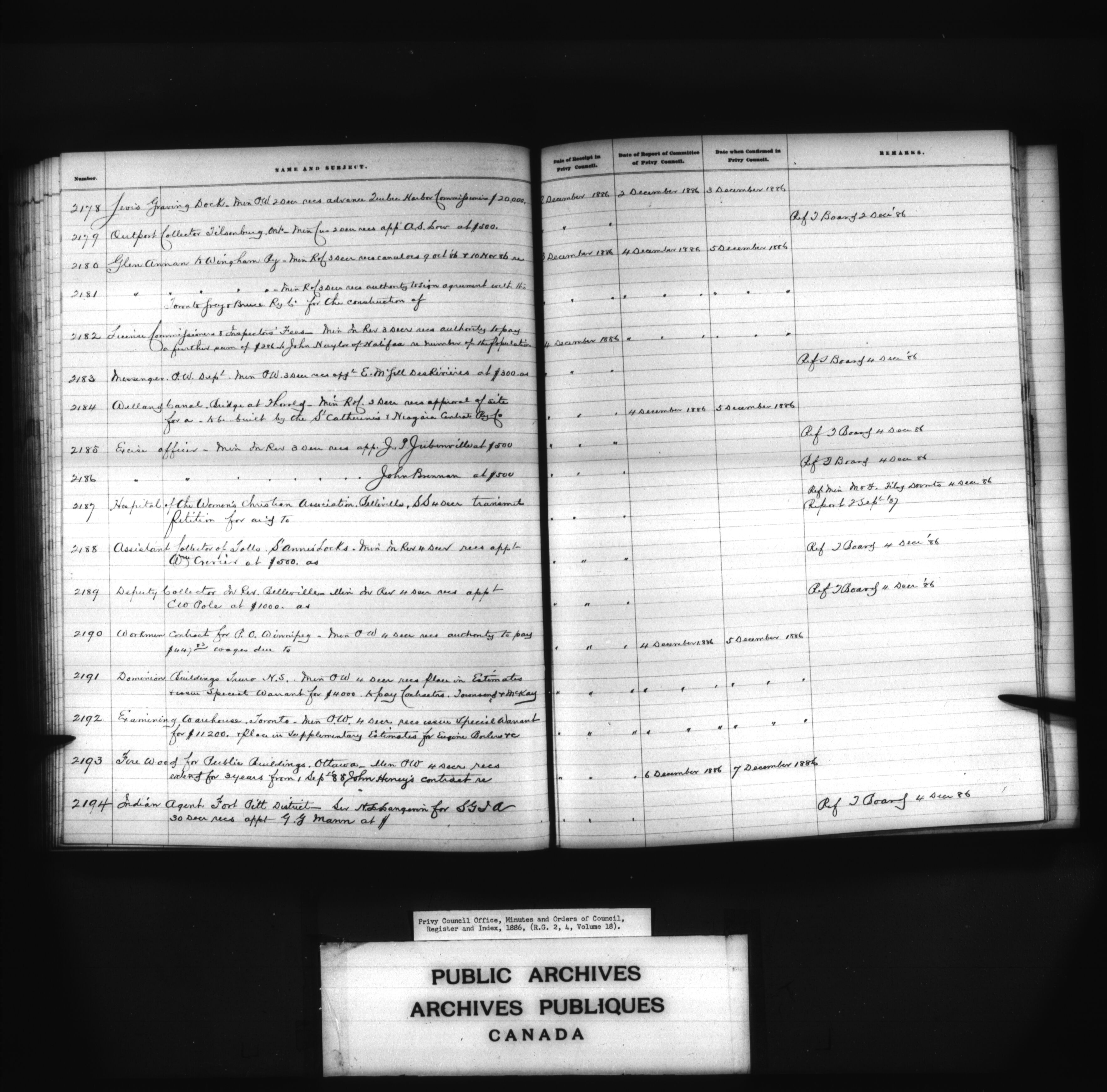 Privy Council Office, Orders in Council : indexes and registers : C-4805