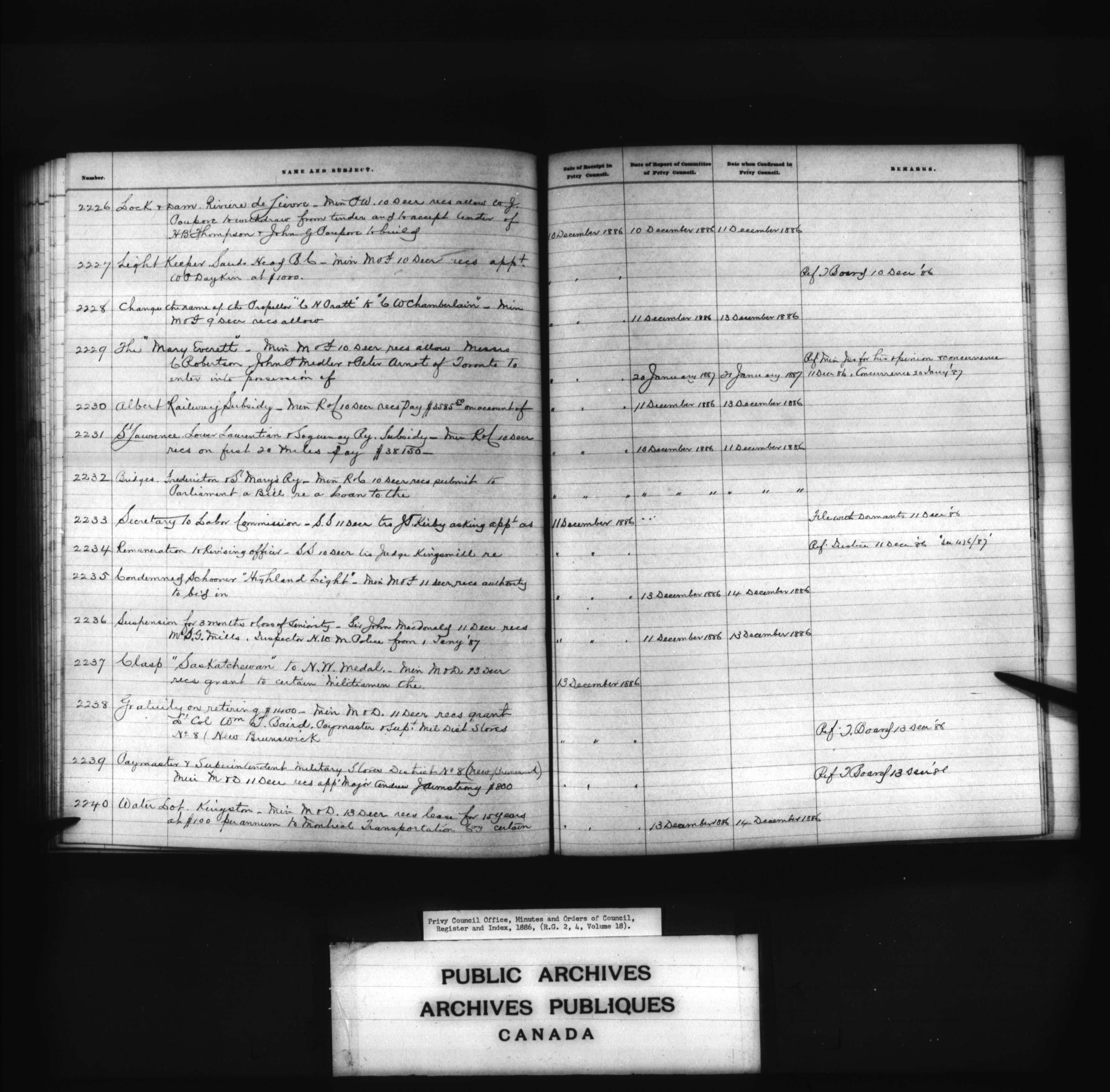 Privy Council Office, Orders in Council : indexes and registers : C-4805