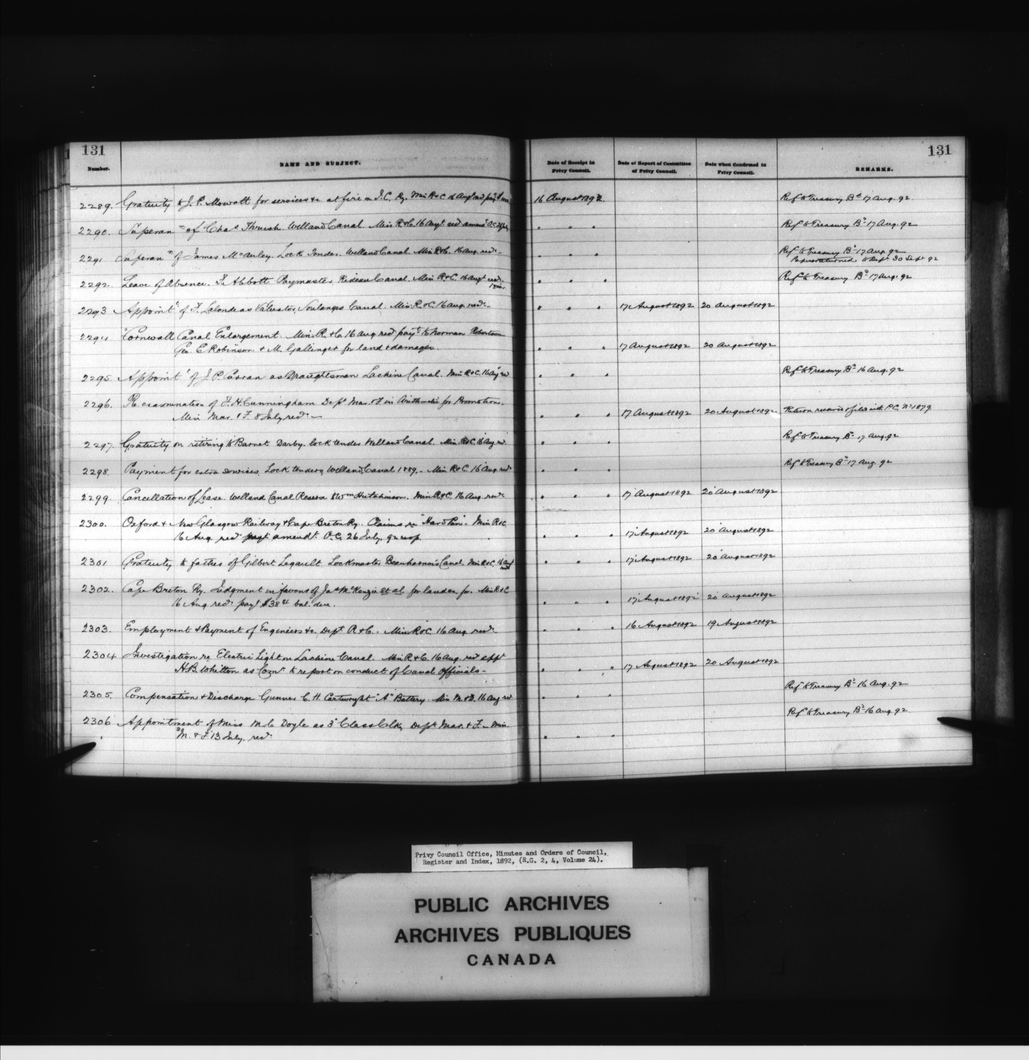 Privy Council Office, Orders in Council : indexes and registers : C-4806