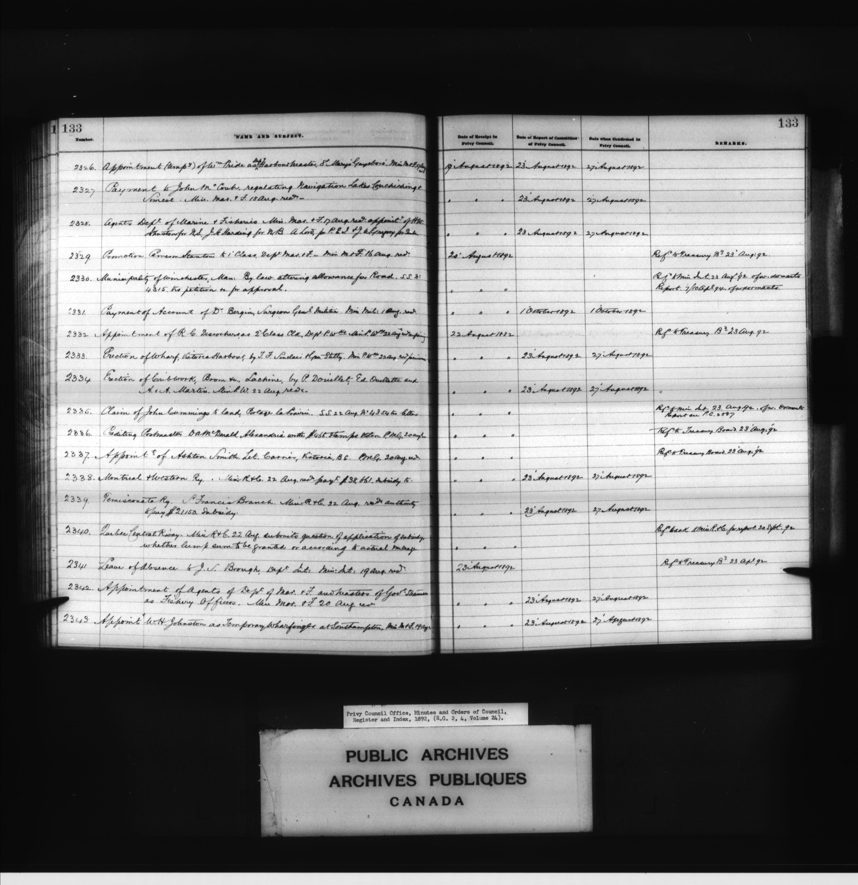 Privy Council Office, Orders in Council : indexes and registers : C-4806