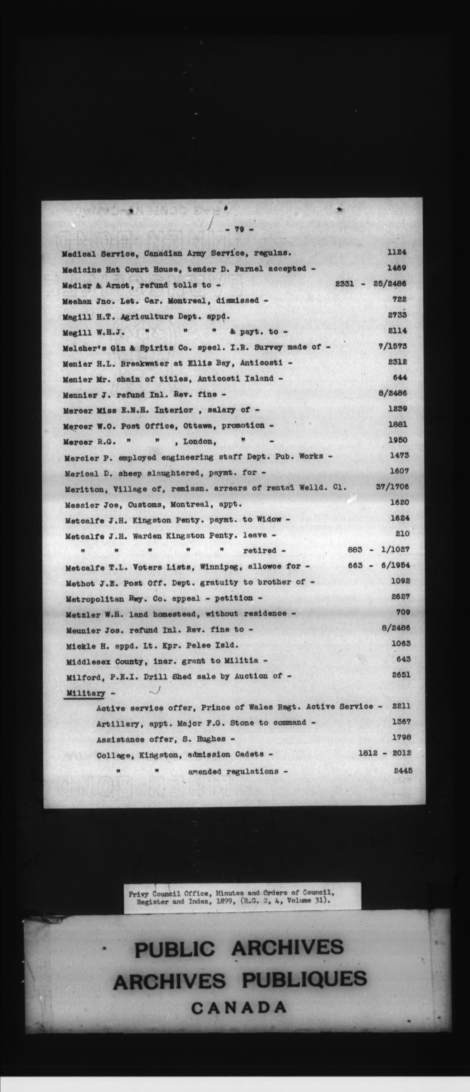 Privy Council Office, Orders in Council : indexes and registers : C-4809