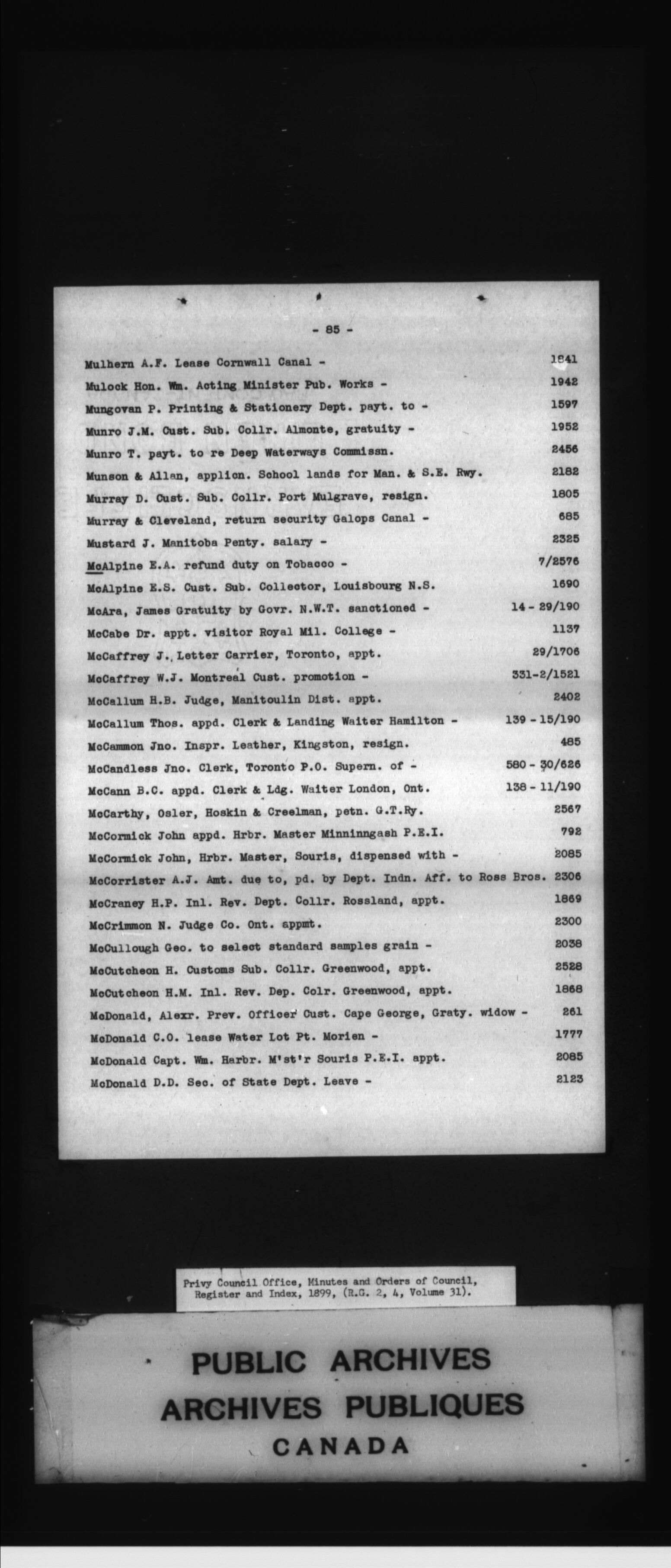 Privy Council Office, Orders in Council : indexes and registers : C-4809
