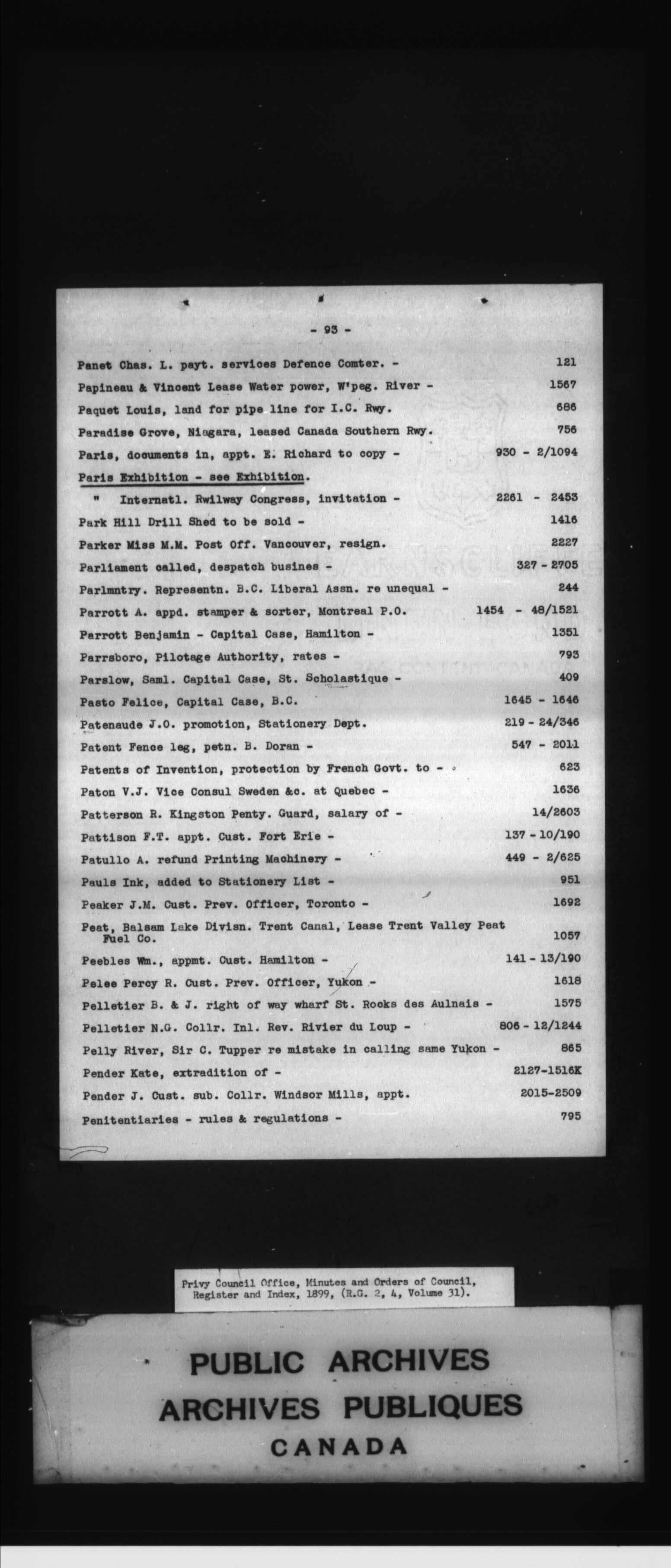 Privy Council Office, Orders in Council : indexes and registers : C-4809