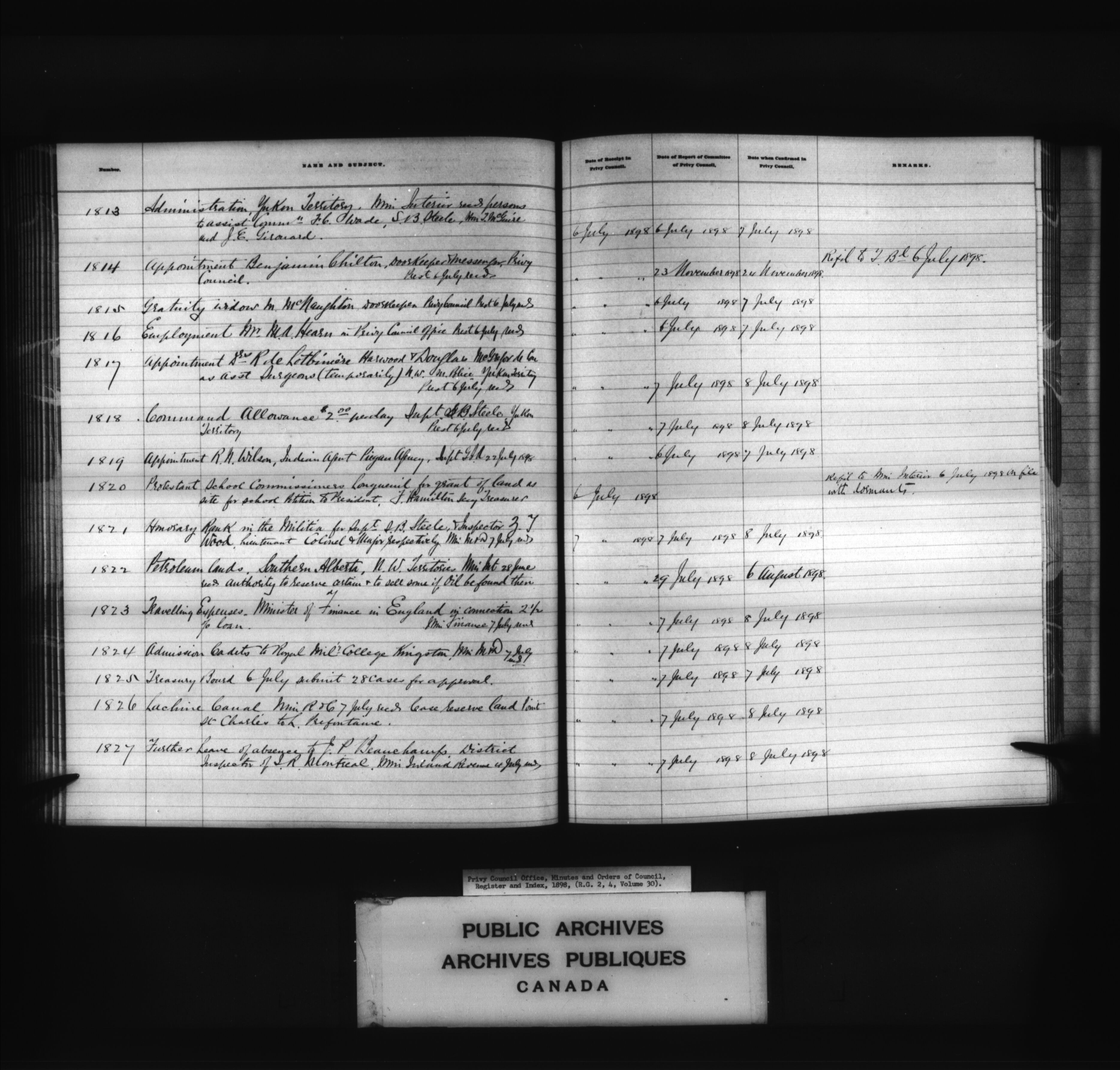 Privy Council Office, Orders in Council : indexes and registers : C-4809