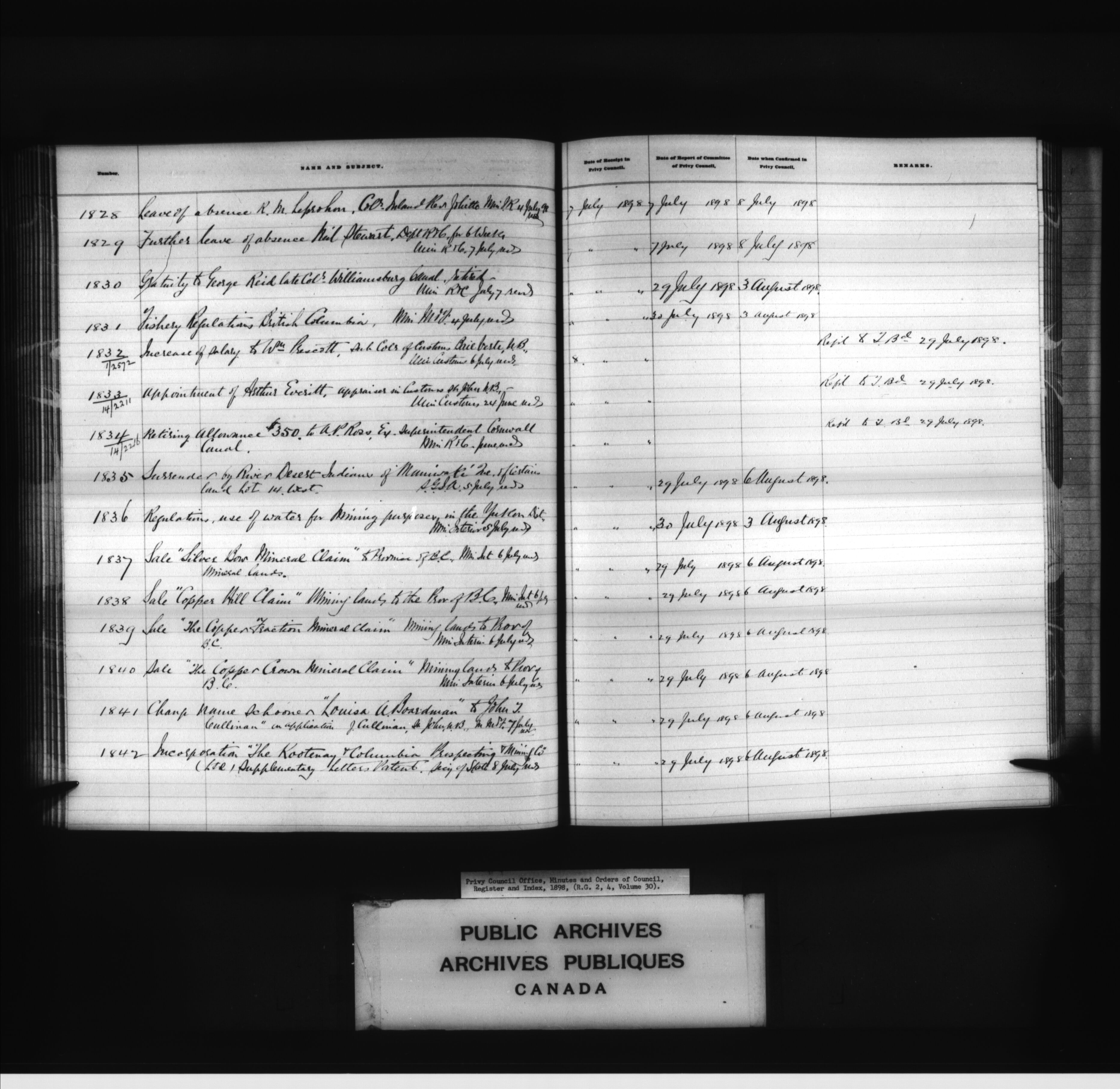 Privy Council Office, Orders in Council : indexes and registers : C-4809