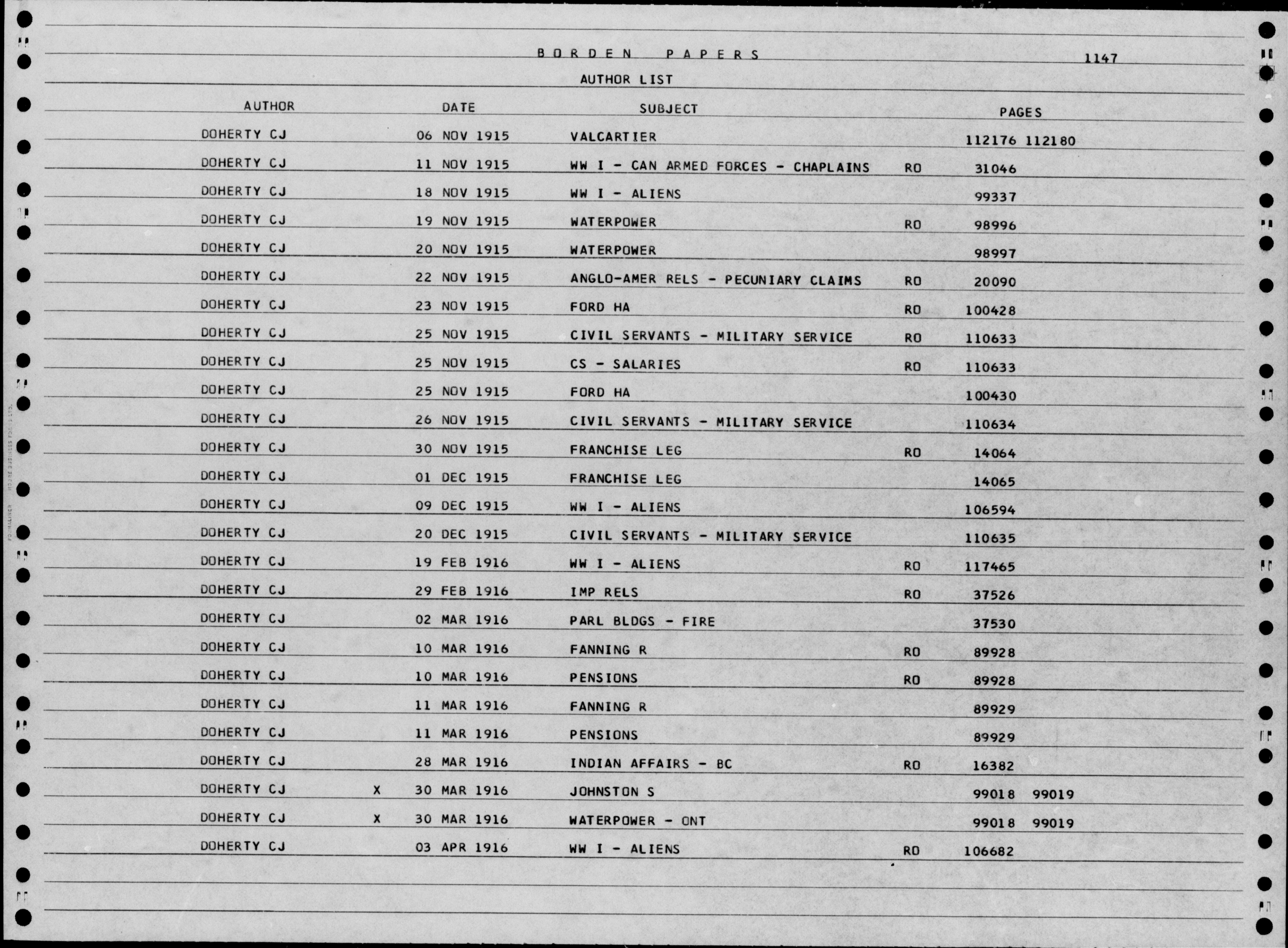 Sir Robert Borden fonds : Subject, author and chronological indexes to volumes 1 to 332 - 4819