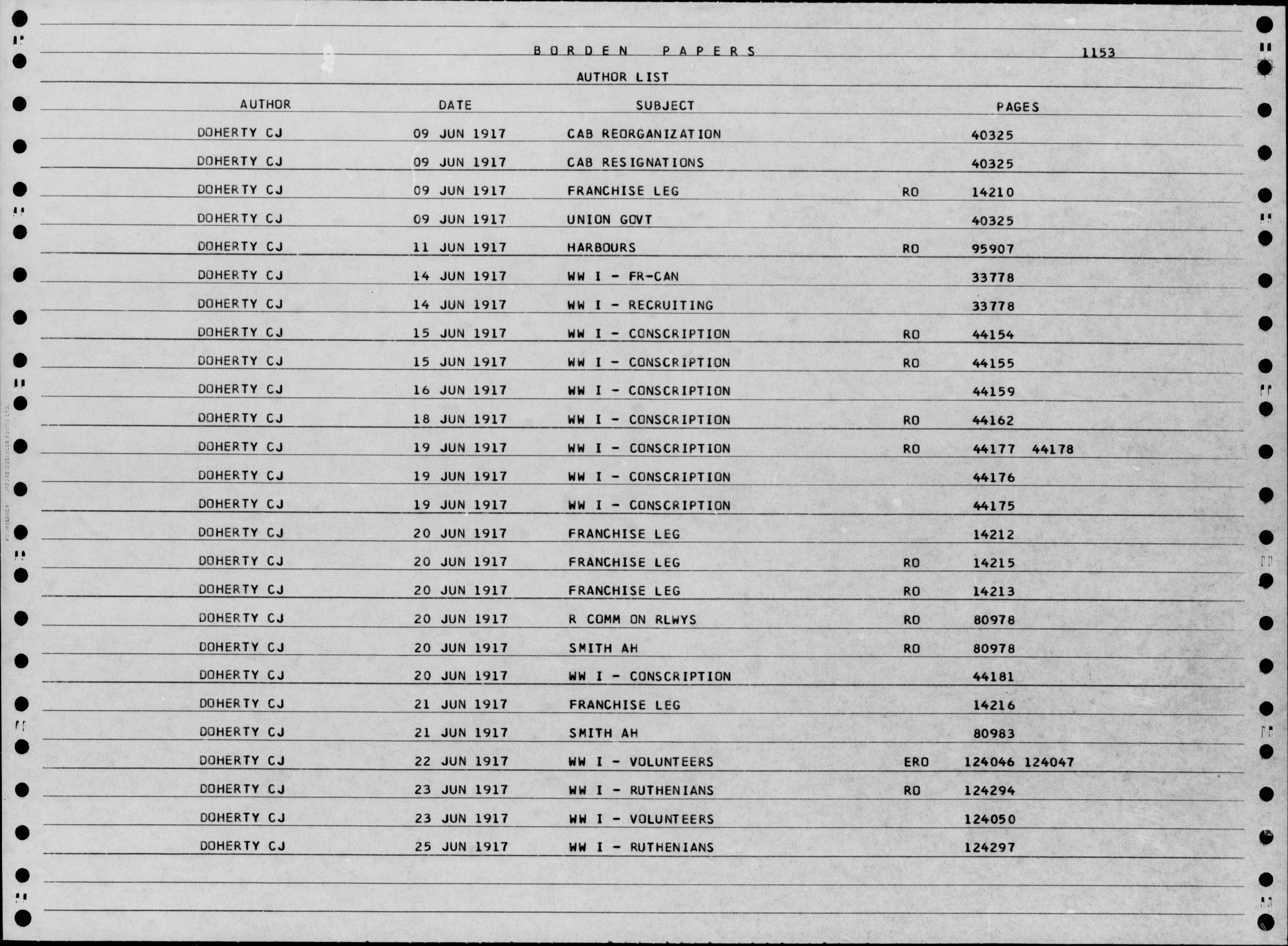 Sir Robert Borden fonds : Subject, author and chronological indexes to volumes 1 to 332 - 4819