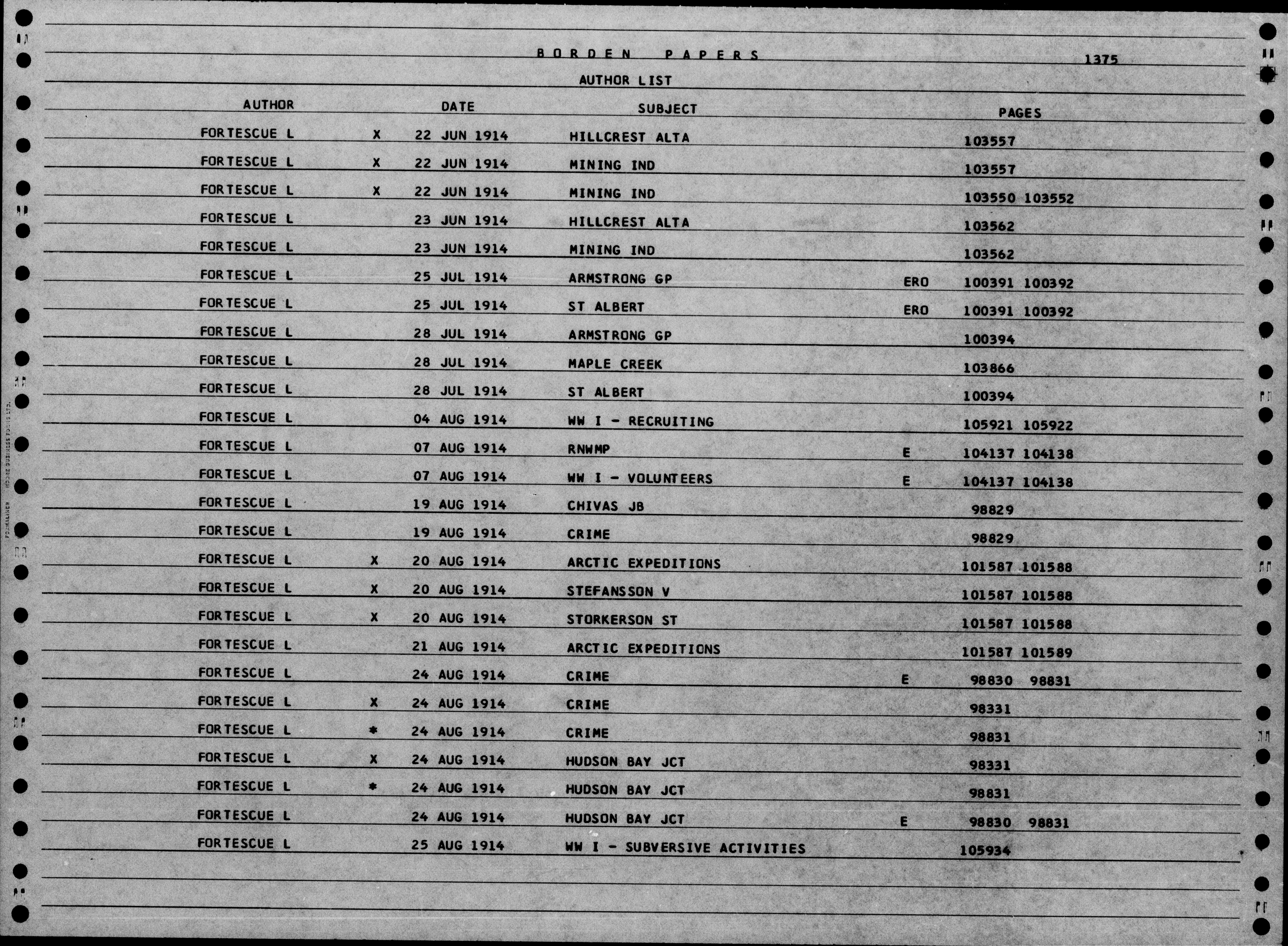 Sir Robert Borden fonds : Subject, author and chronological indexes to volumes 1 to 332 - 4820