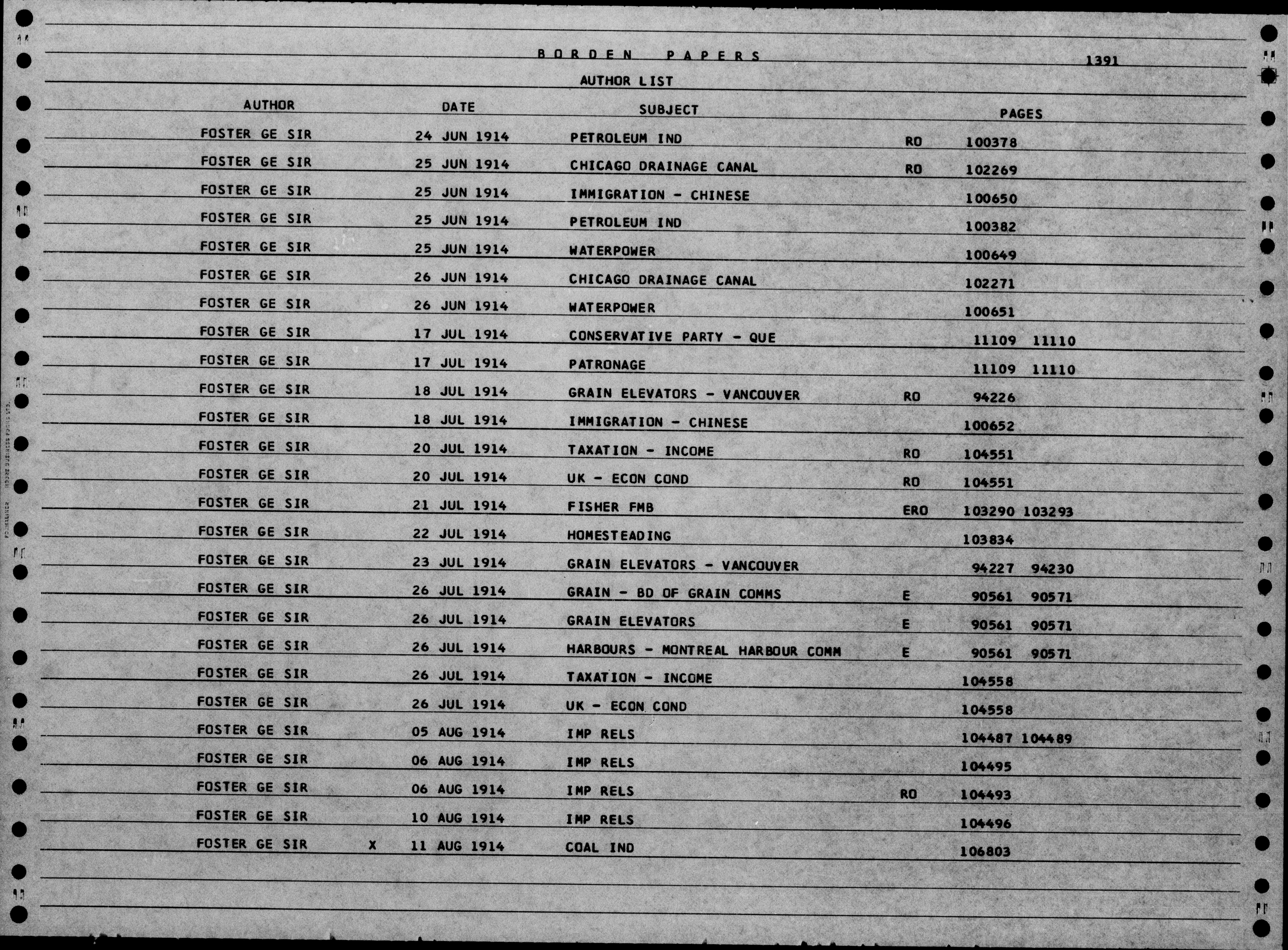 Sir Robert Borden fonds : Subject, author and chronological indexes to volumes 1 to 332 - 4820