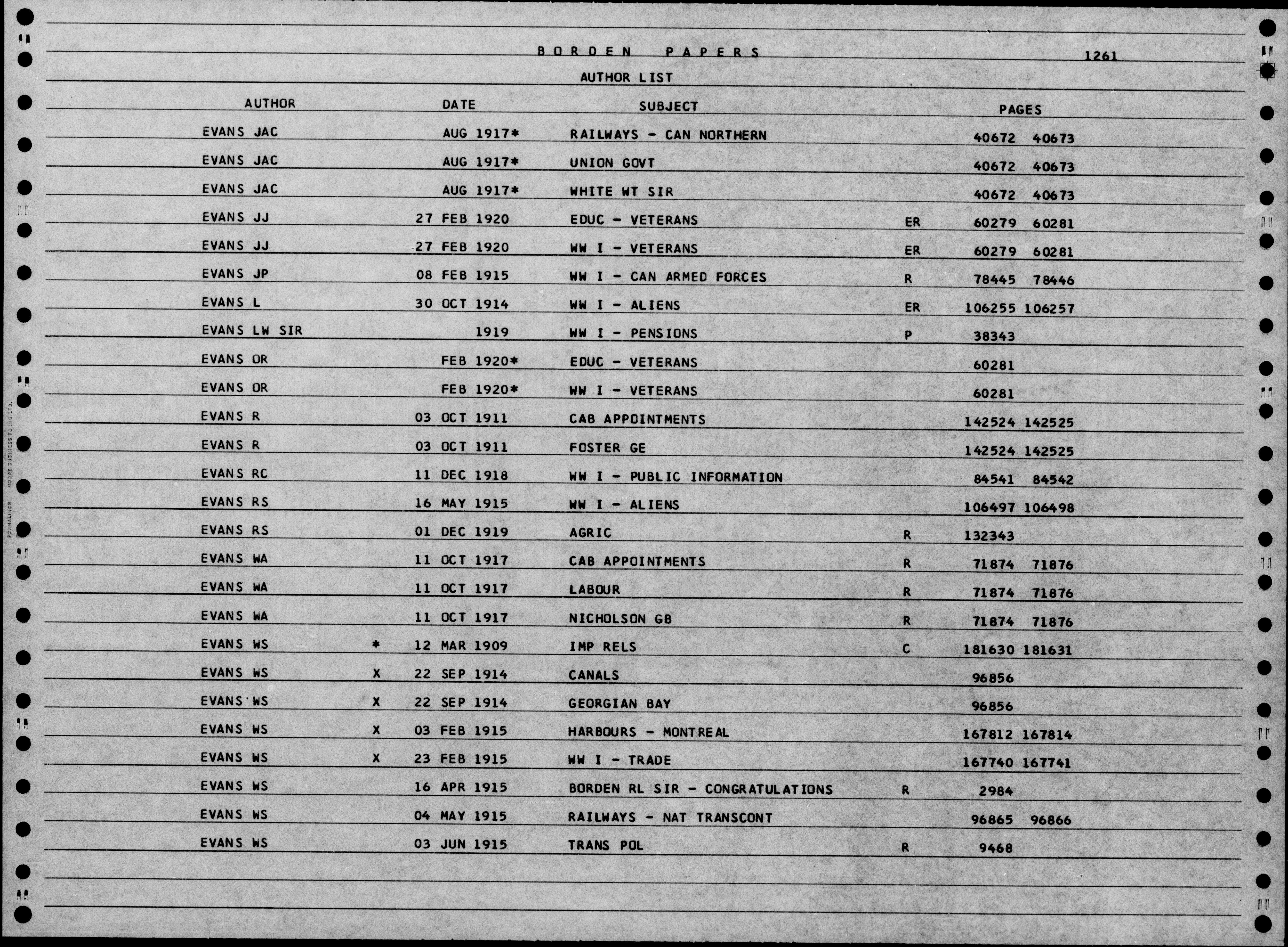 Sir Robert Borden fonds : Subject, author and chronological indexes to volumes 1 to 332 - 4820