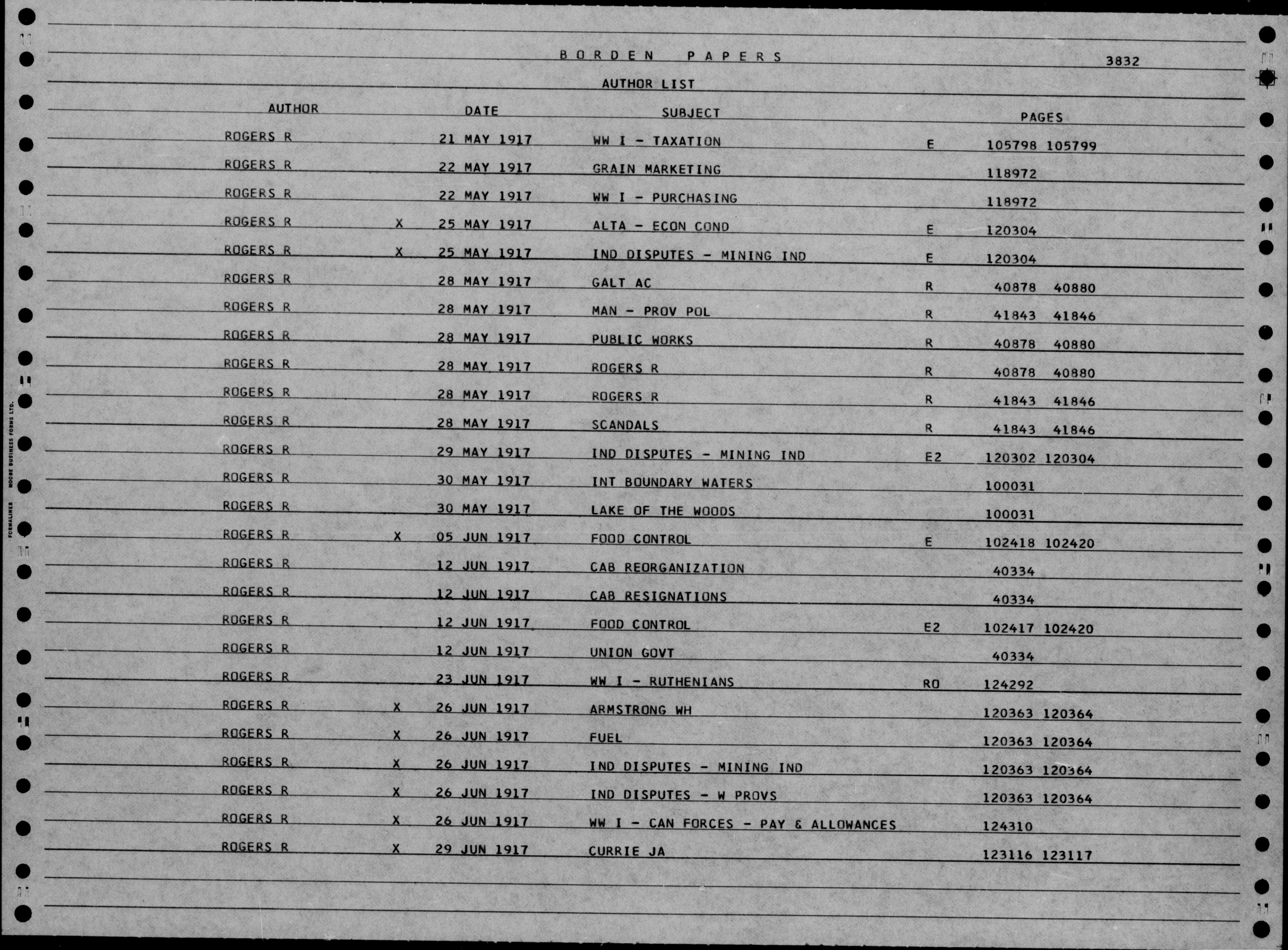Sir Robert Borden fonds : Subject, author and chronological indexes to volumes 1 to 332 - 4821
