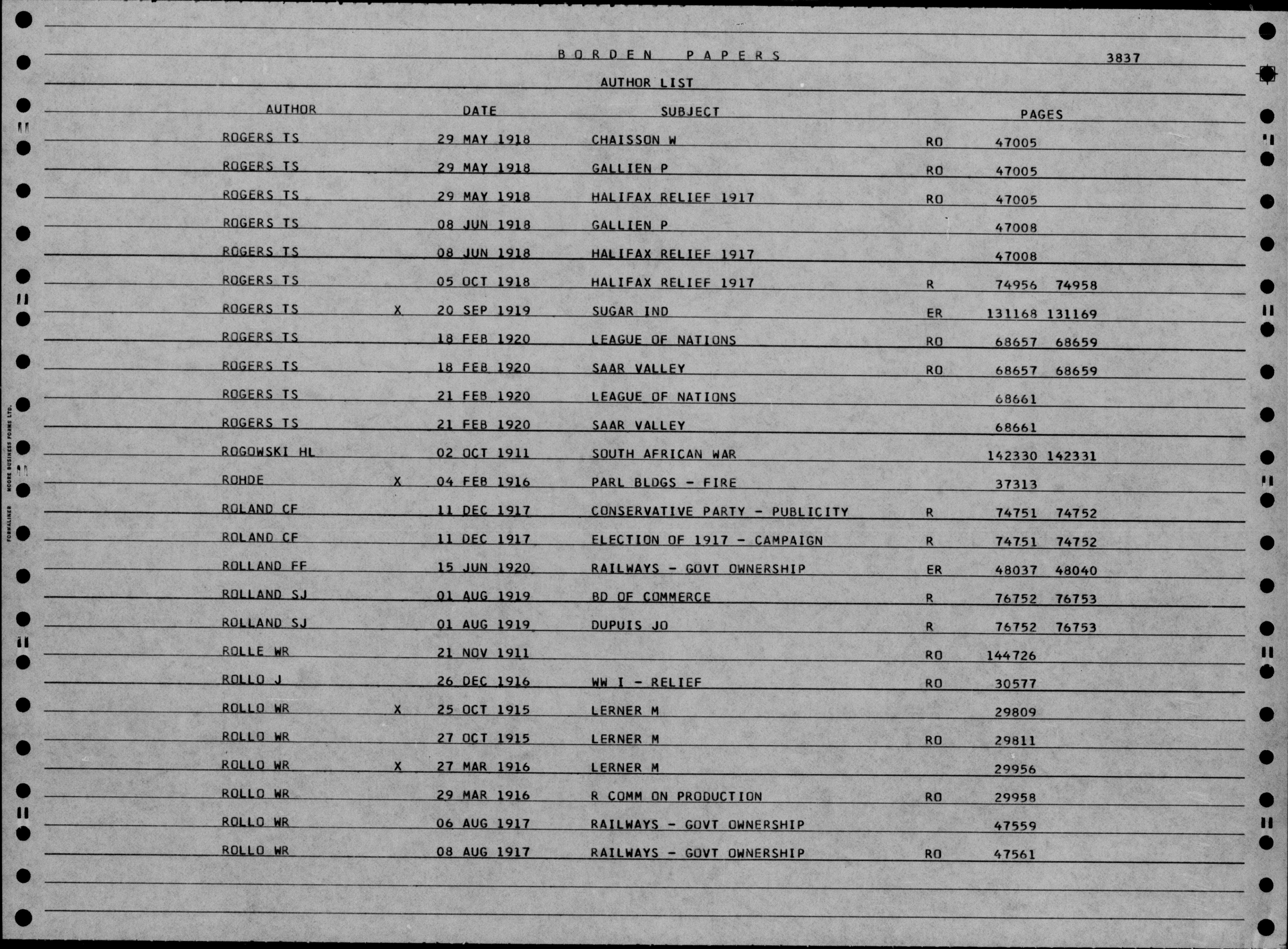 Sir Robert Borden fonds : Subject, author and chronological indexes to volumes 1 to 332 - 4821