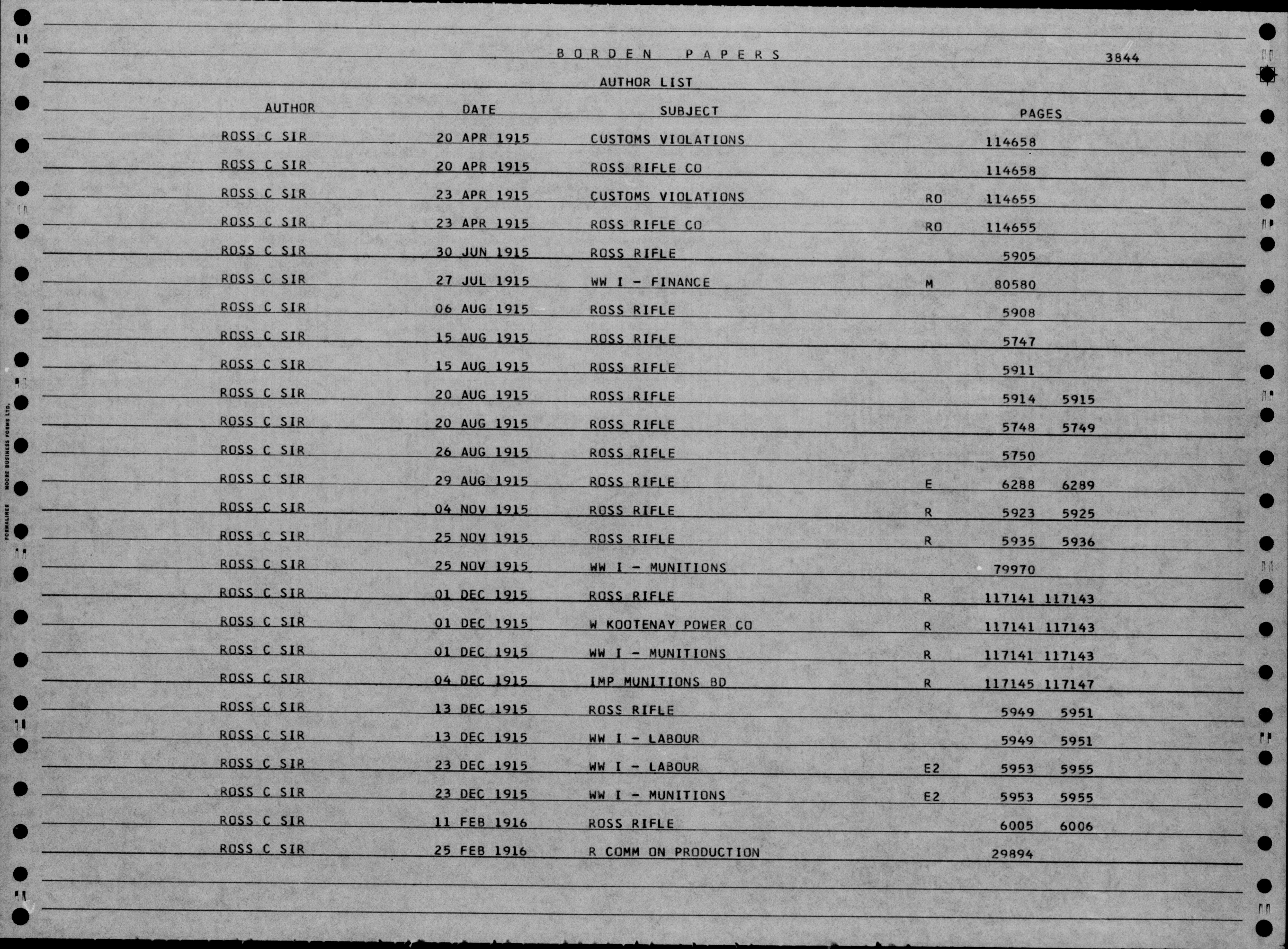 Sir Robert Borden fonds : Subject, author and chronological indexes to volumes 1 to 332 - 4821
