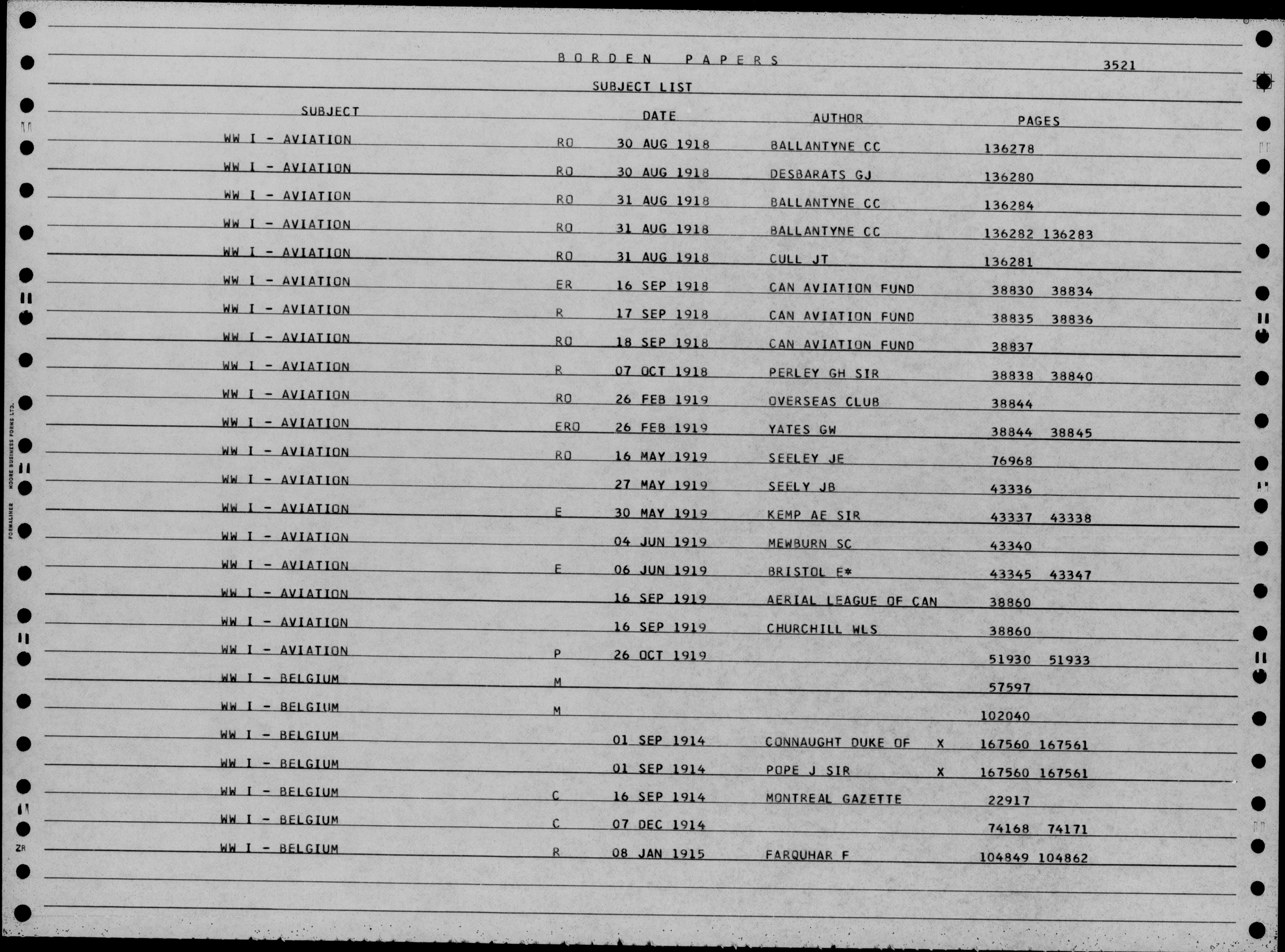 Sir Robert Borden fonds : Subject, author and chronological indexes to volumes 1 to 332 - 4825