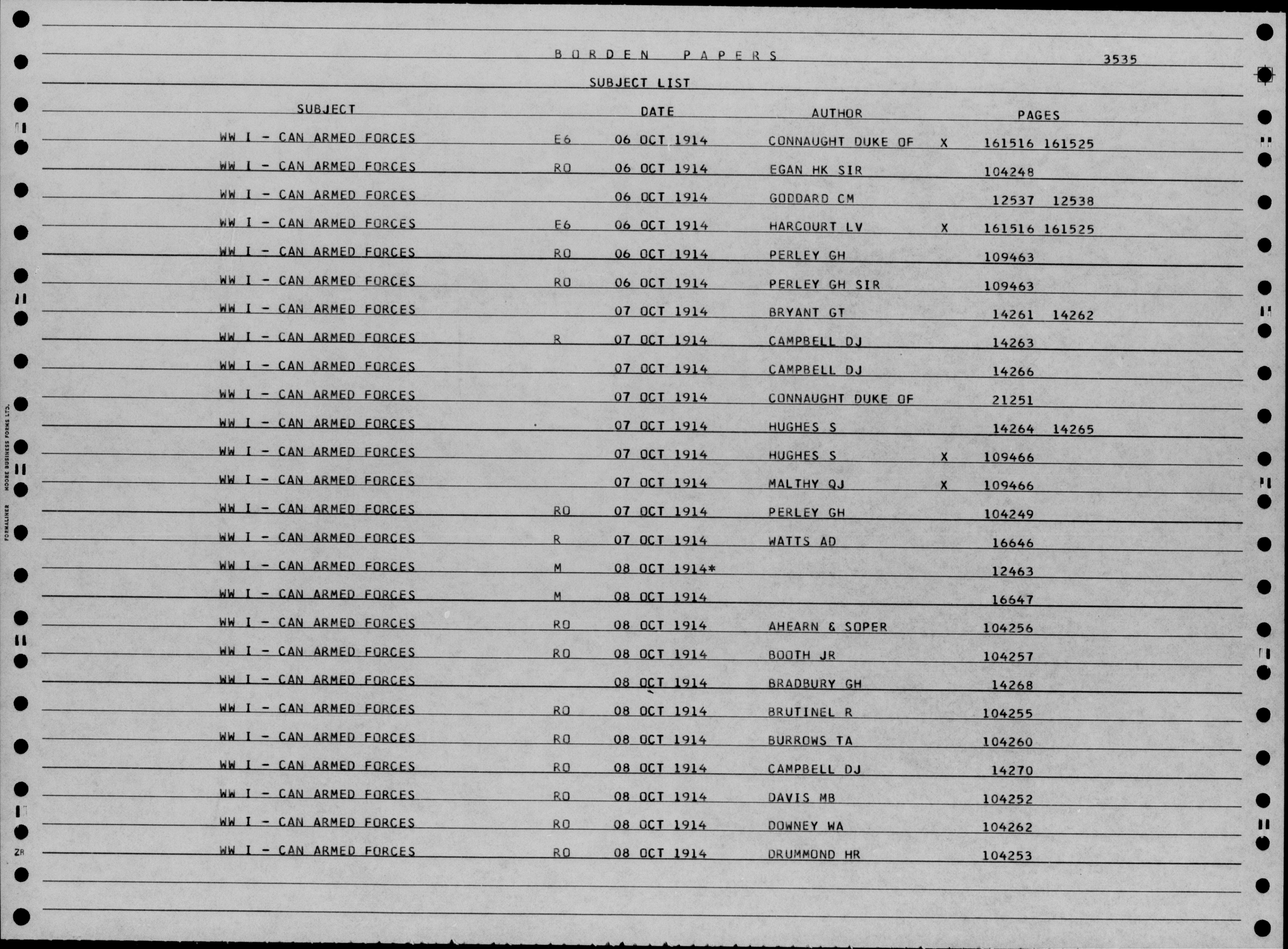 Sir Robert Borden fonds : Subject, author and chronological indexes to volumes 1 to 332 - 4825