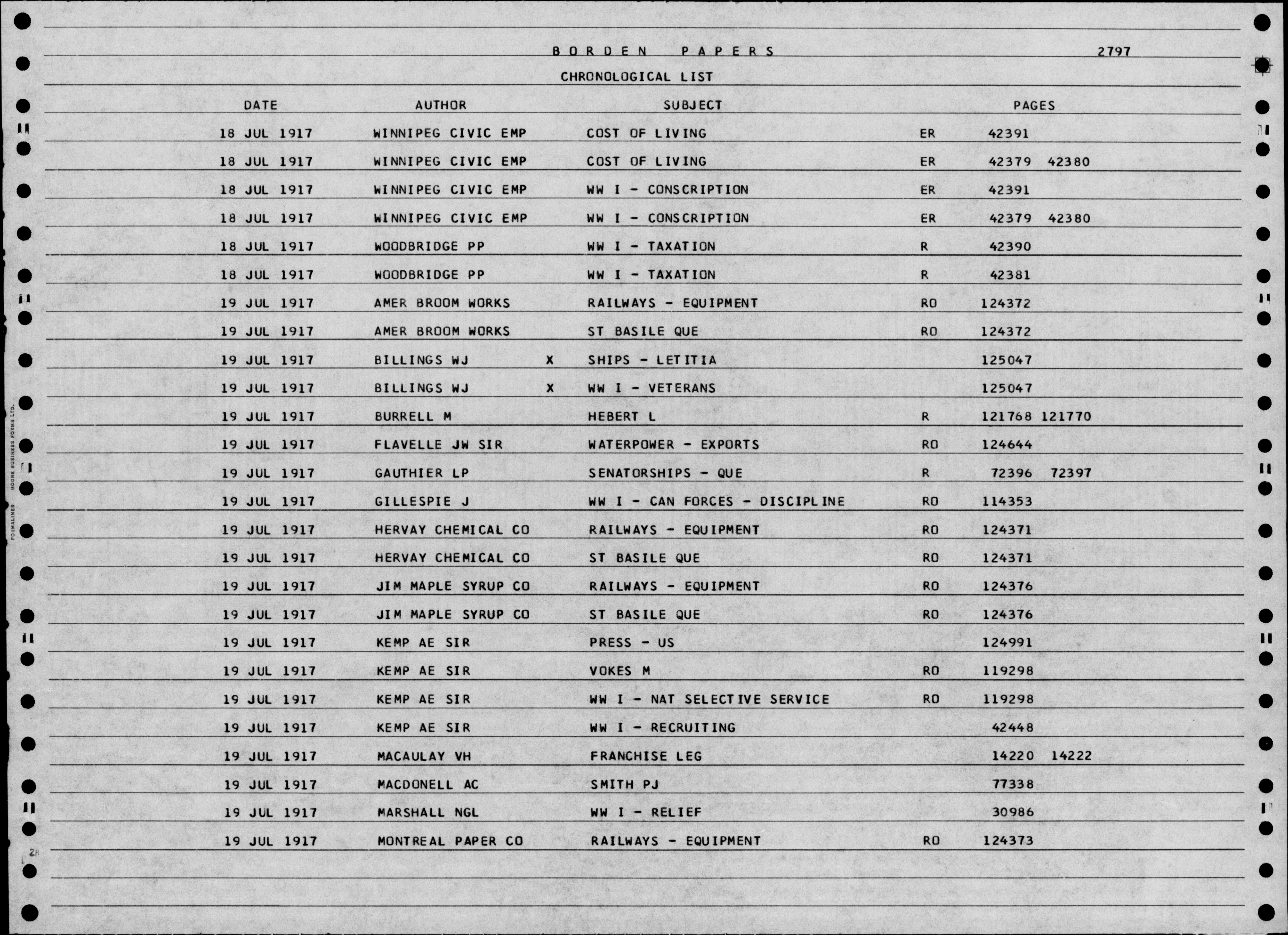 Sir Robert Borden fonds : Subject, author and chronological indexes to volumes 1 to 332 - 4828