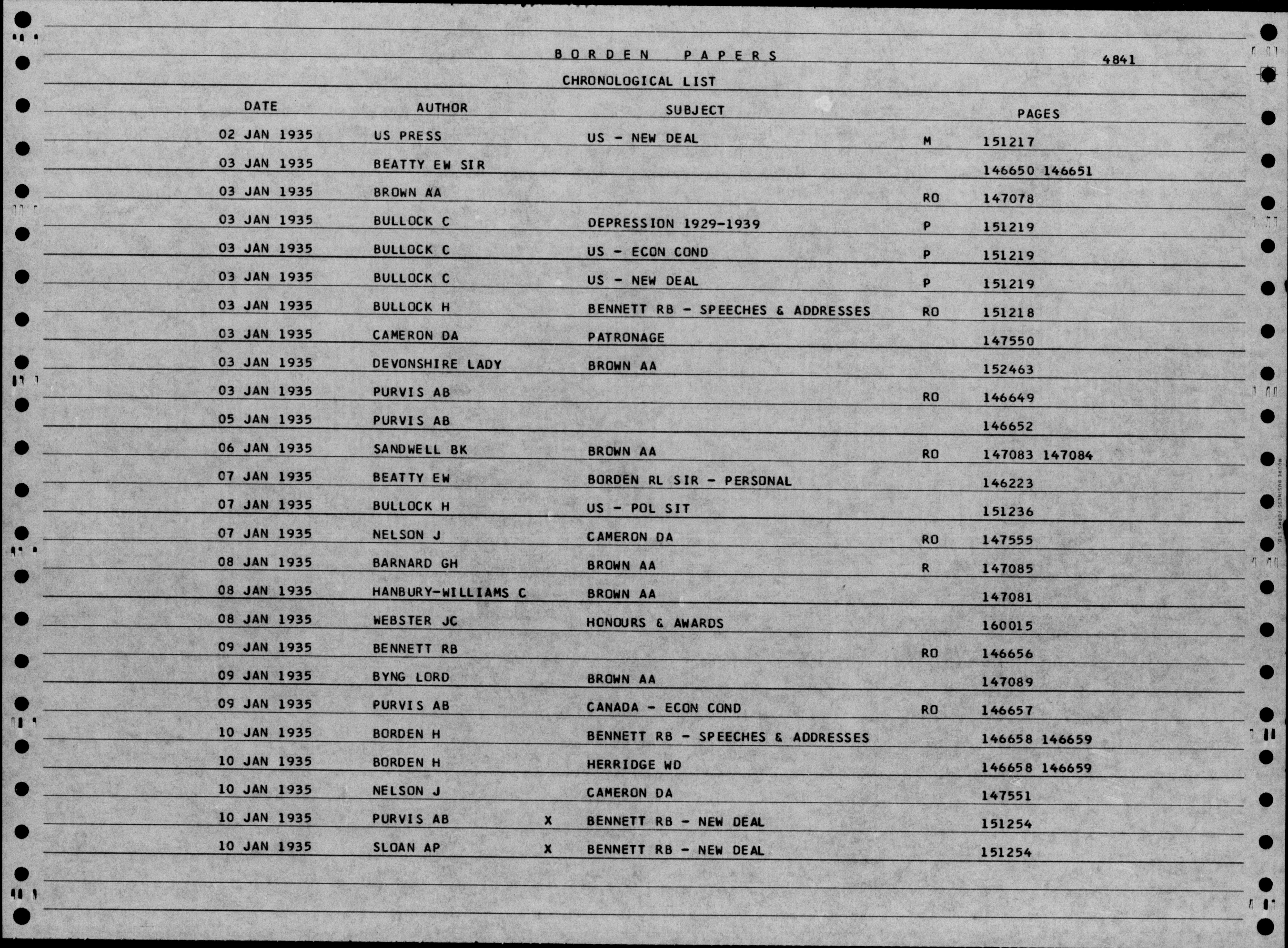 Sir Robert Borden fonds : Subject, author and chronological indexes to volumes 1 to 332 - 4829
