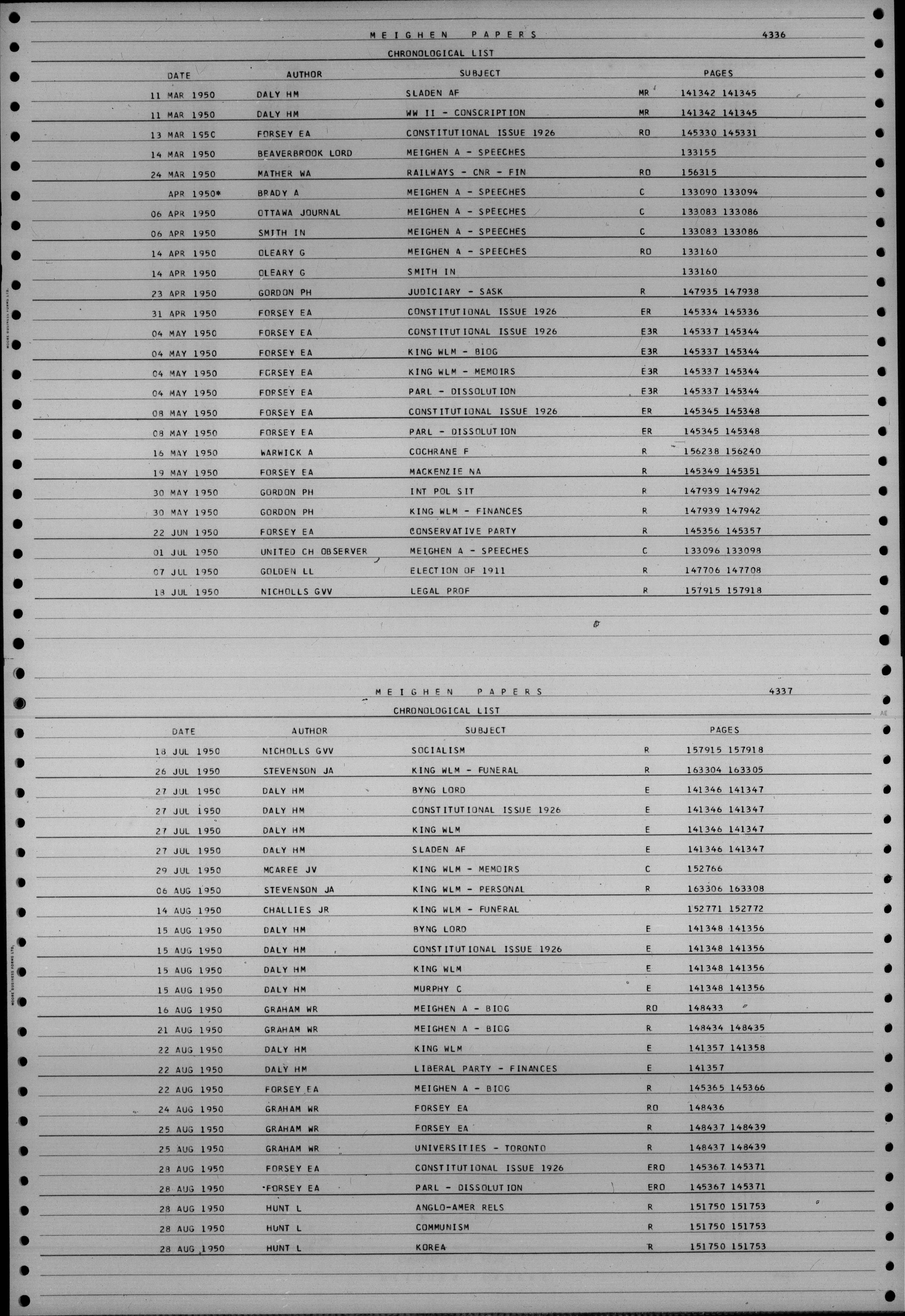Arthur Meighen : Indexes - 4835