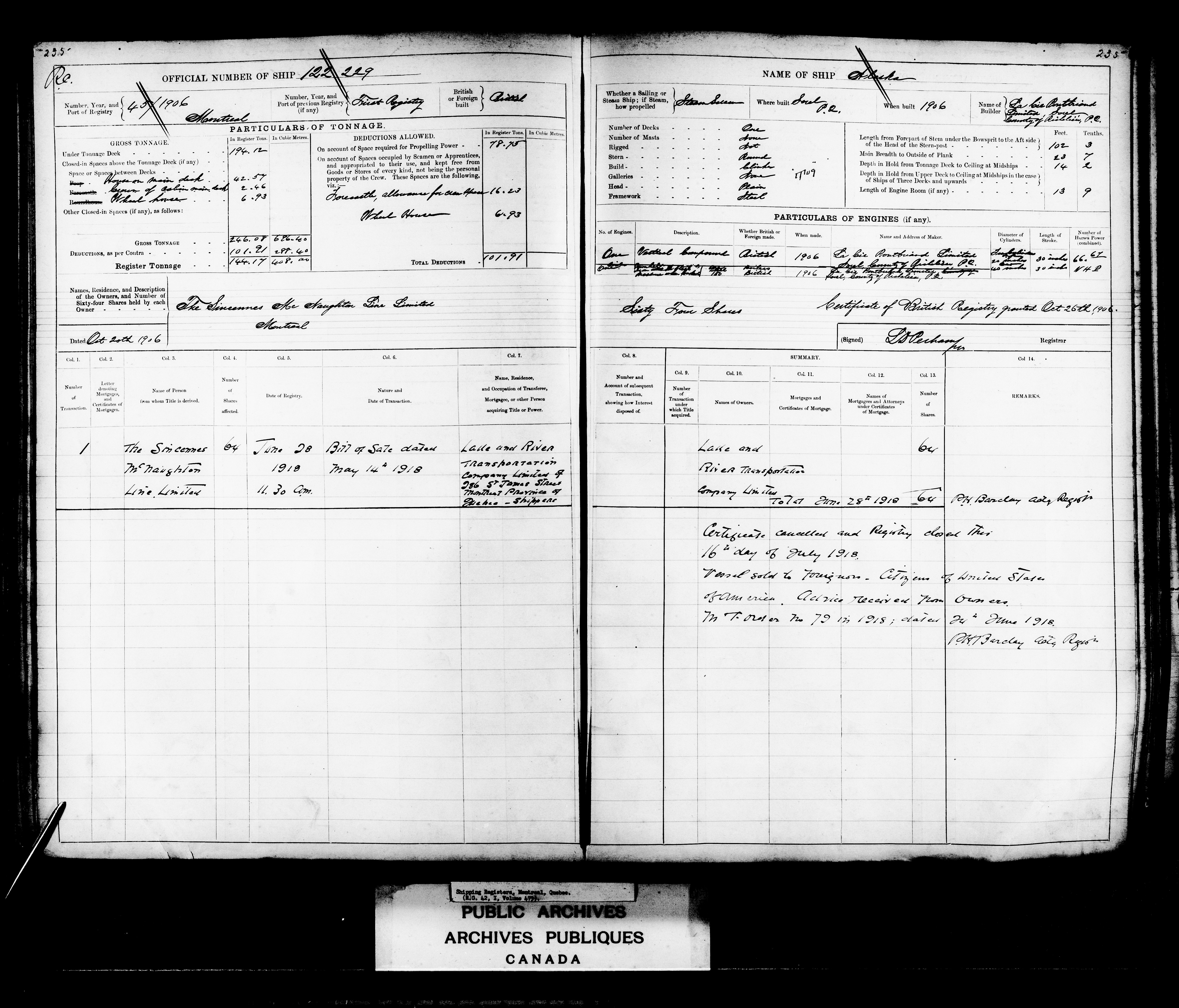 Montréal [Québec] Registrar of Shipping, 1832-1954 : C-4849