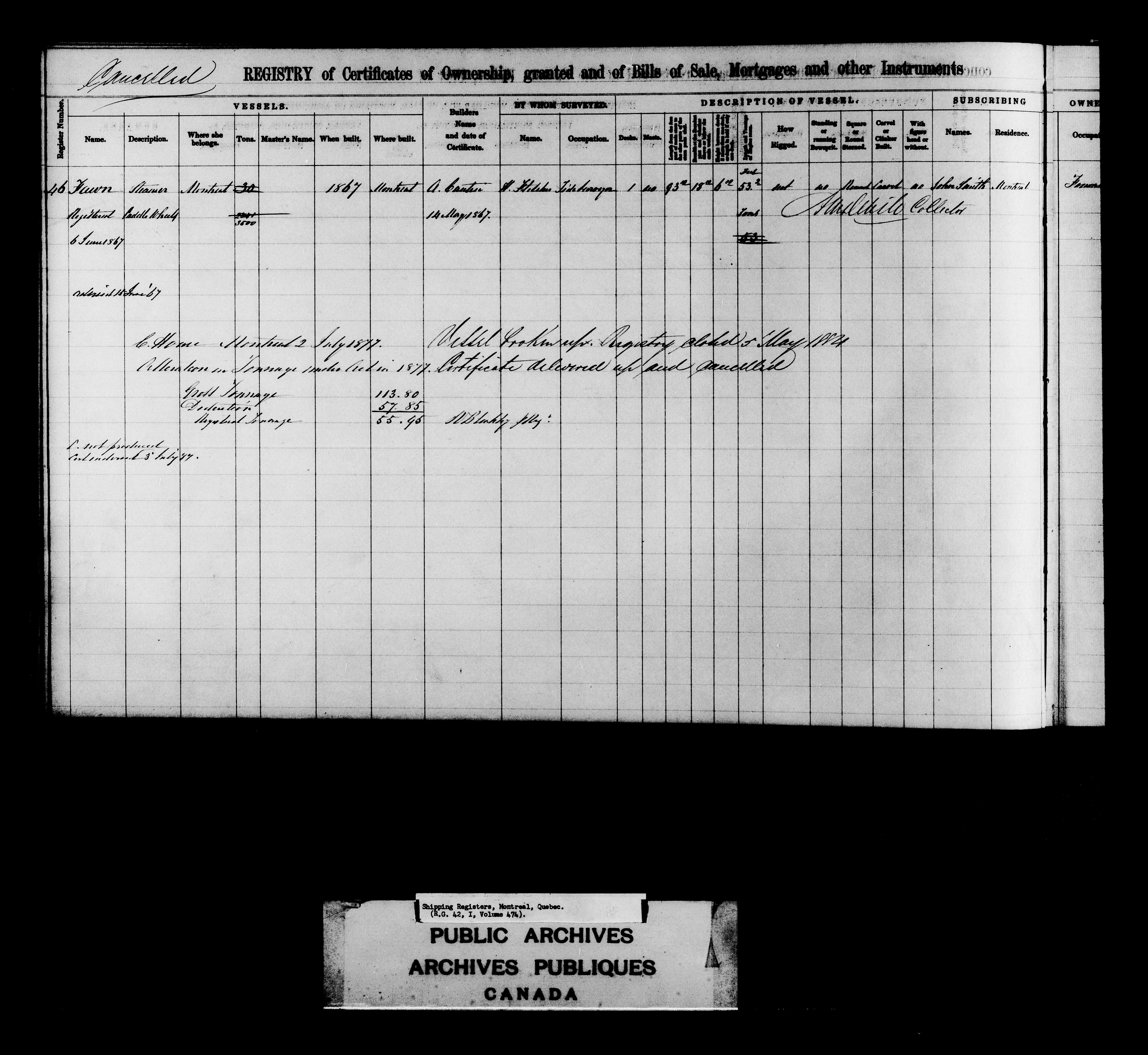 Montréal [Québec] Registrar of Shipping, 1832-1954 : C-4849