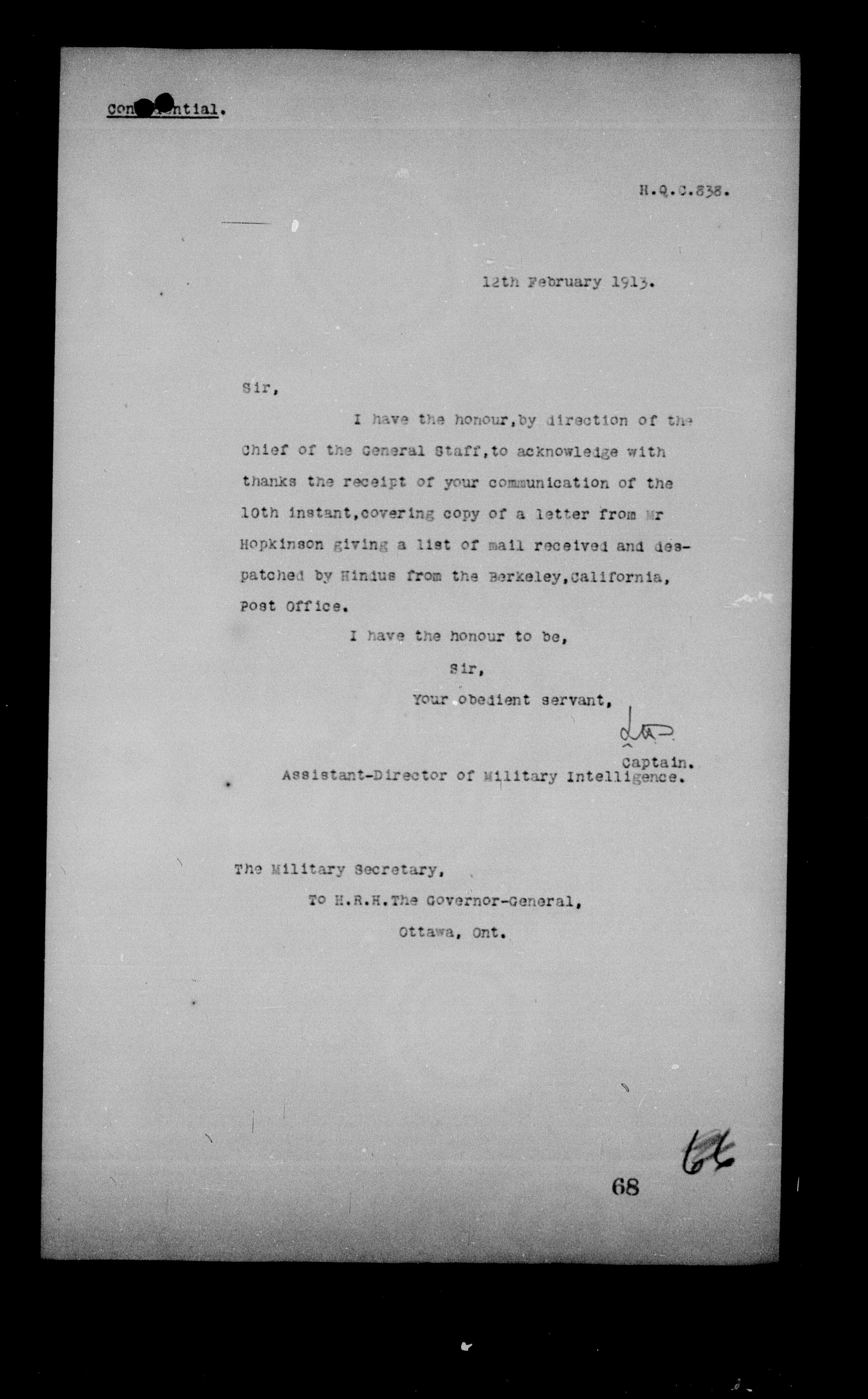 Department of National Defence : 1903 Headquarters Central Registry, subject files, 1866-1950 : C-4858
