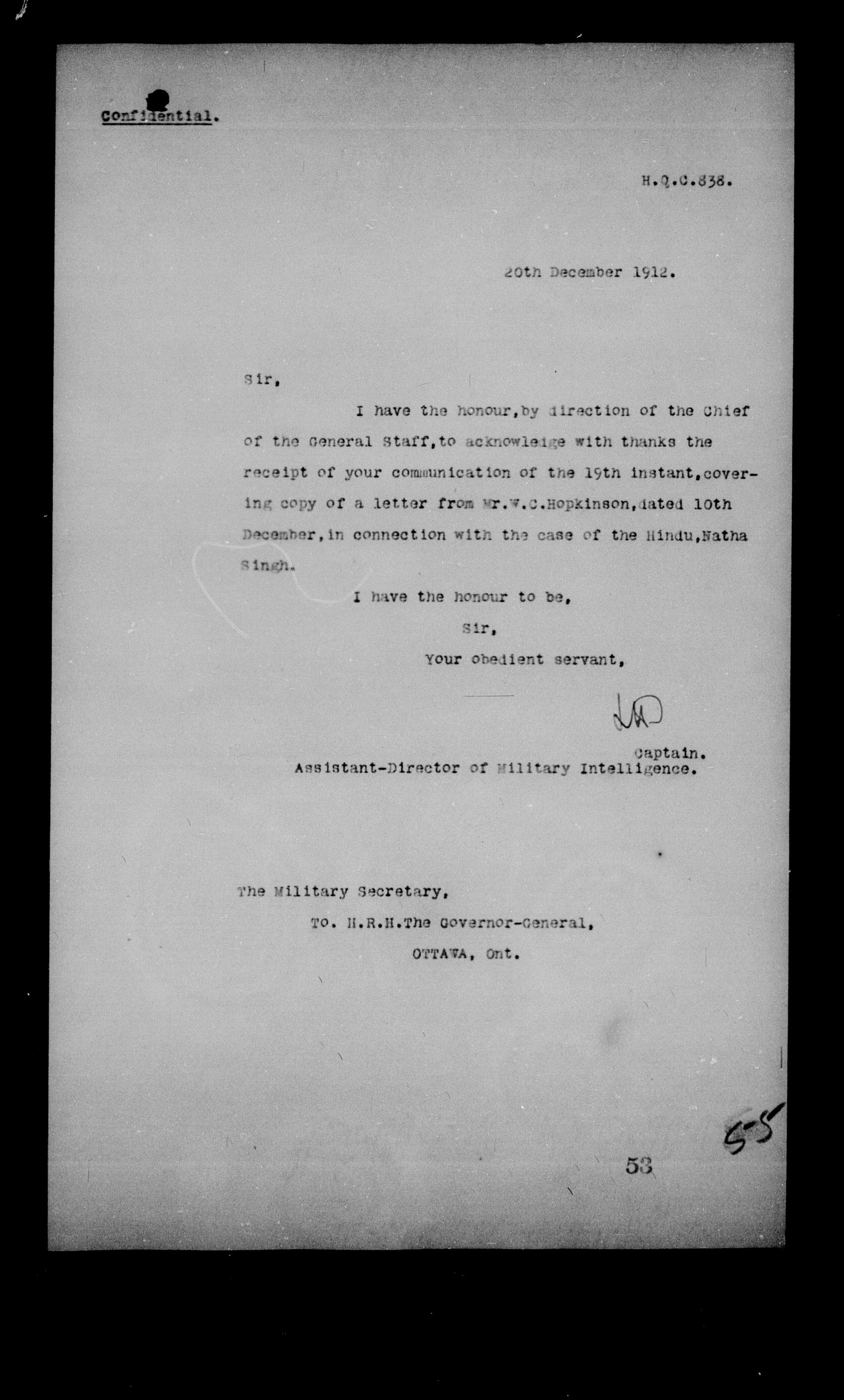 Department of National Defence : 1903 Headquarters Central Registry, subject files, 1866-1950 : C-4858