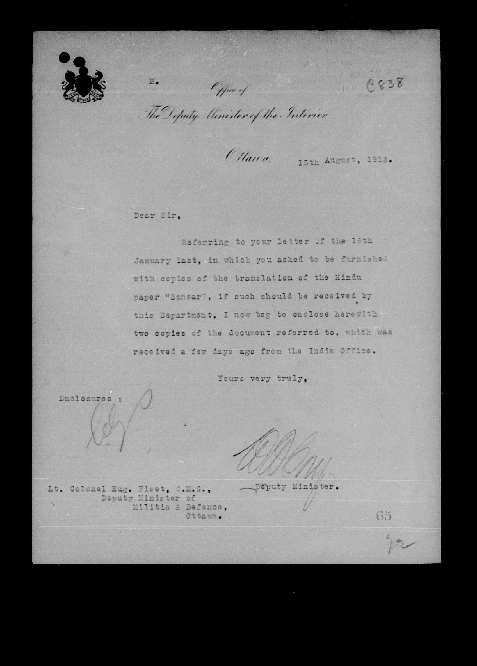 Department of Militia and Defence : 1903 Army Central Registry, subject files - 4859