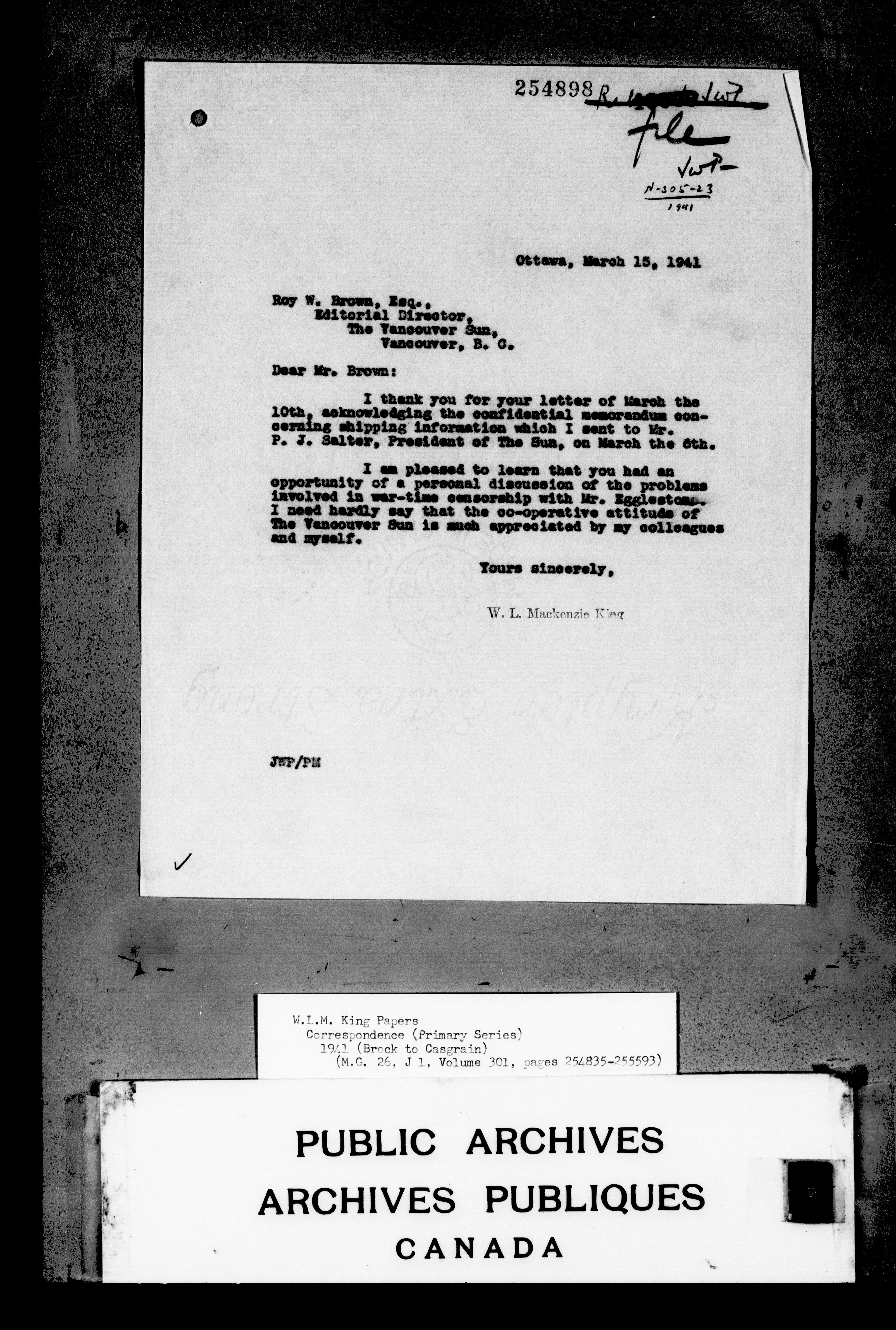 William Lyon Mackenzie King : Primary series correspondence (J1) : C-4860