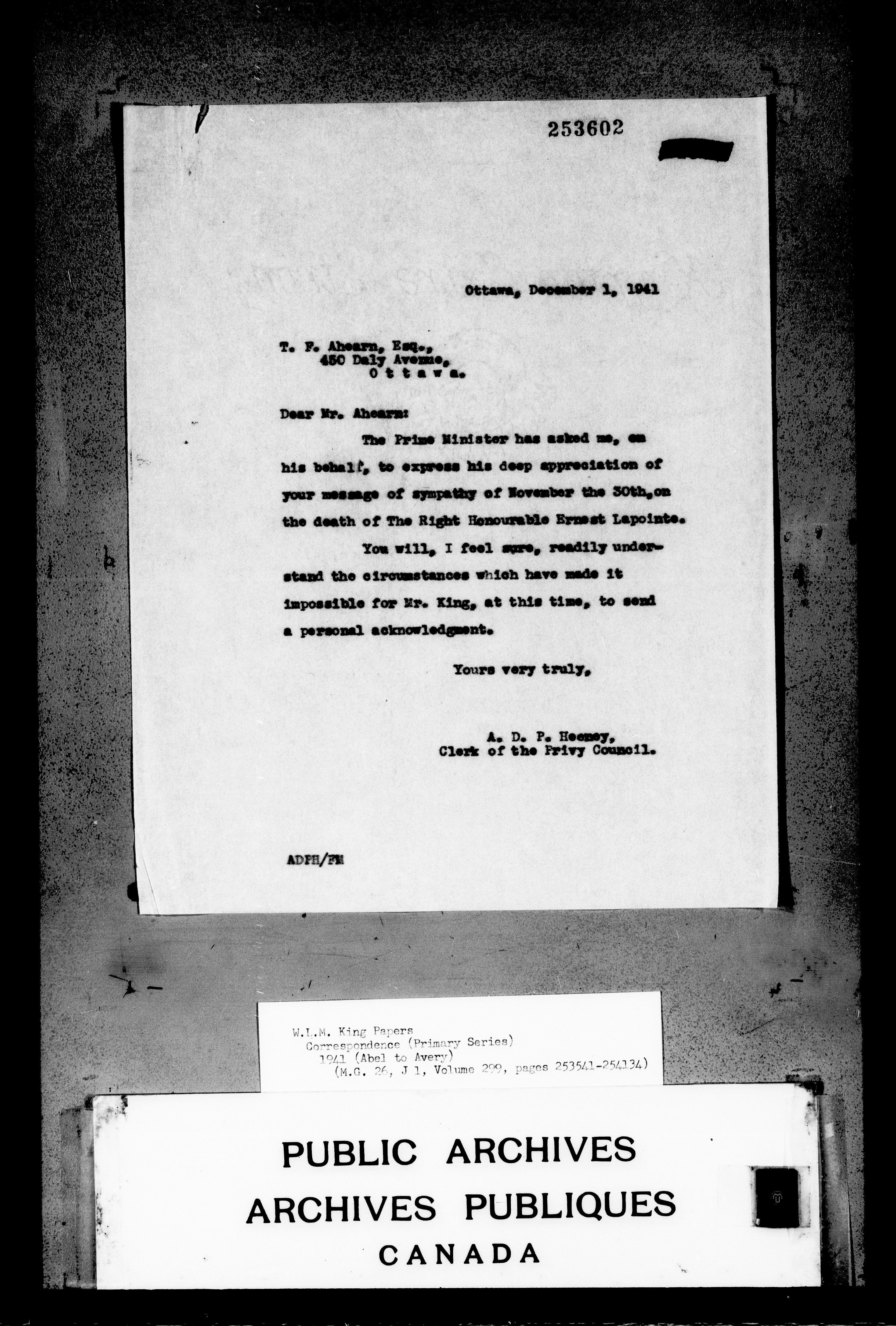 William Lyon Mackenzie King : Primary series correspondence (J1) - 4860