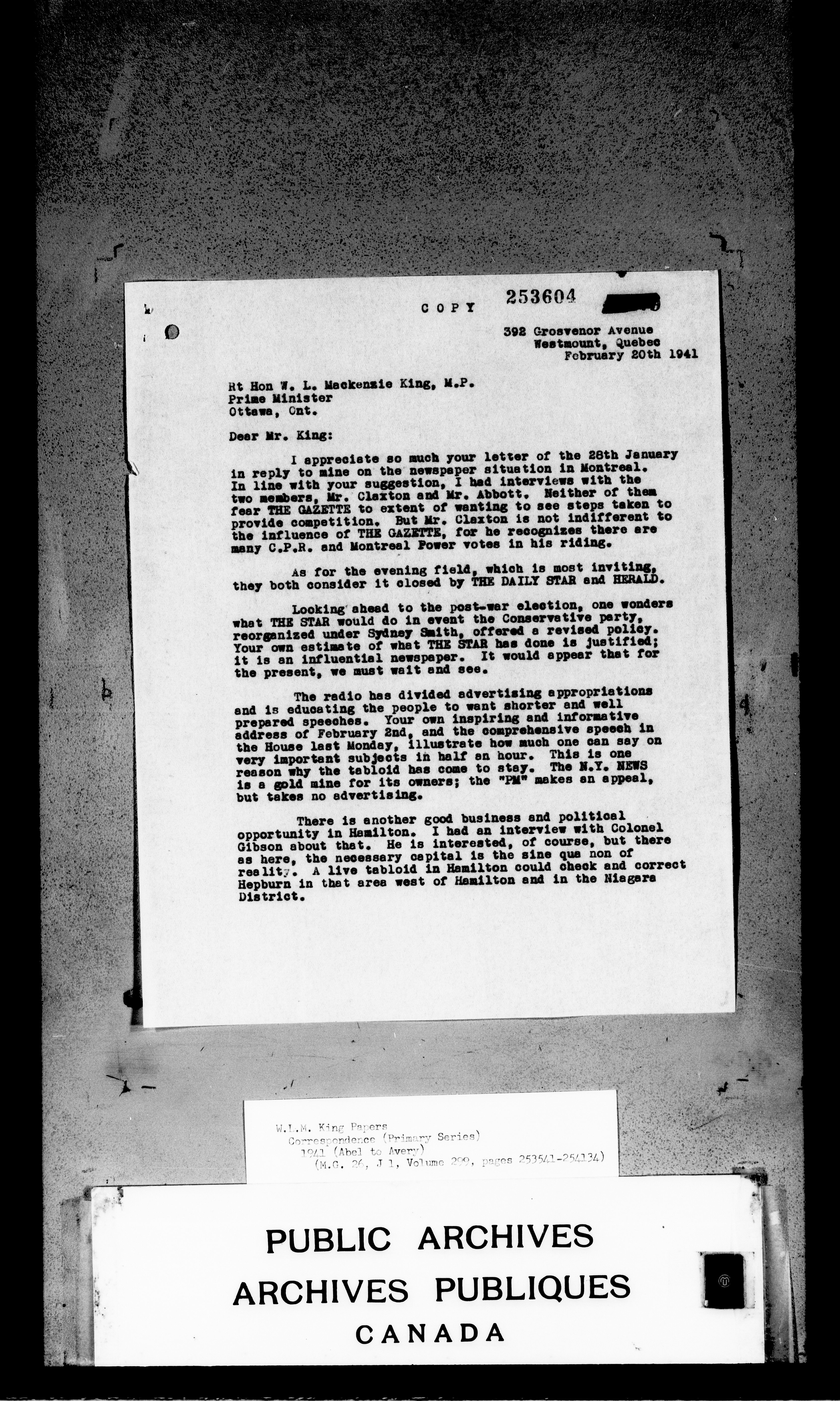William Lyon Mackenzie King : Primary series correspondence (J1) - 4860