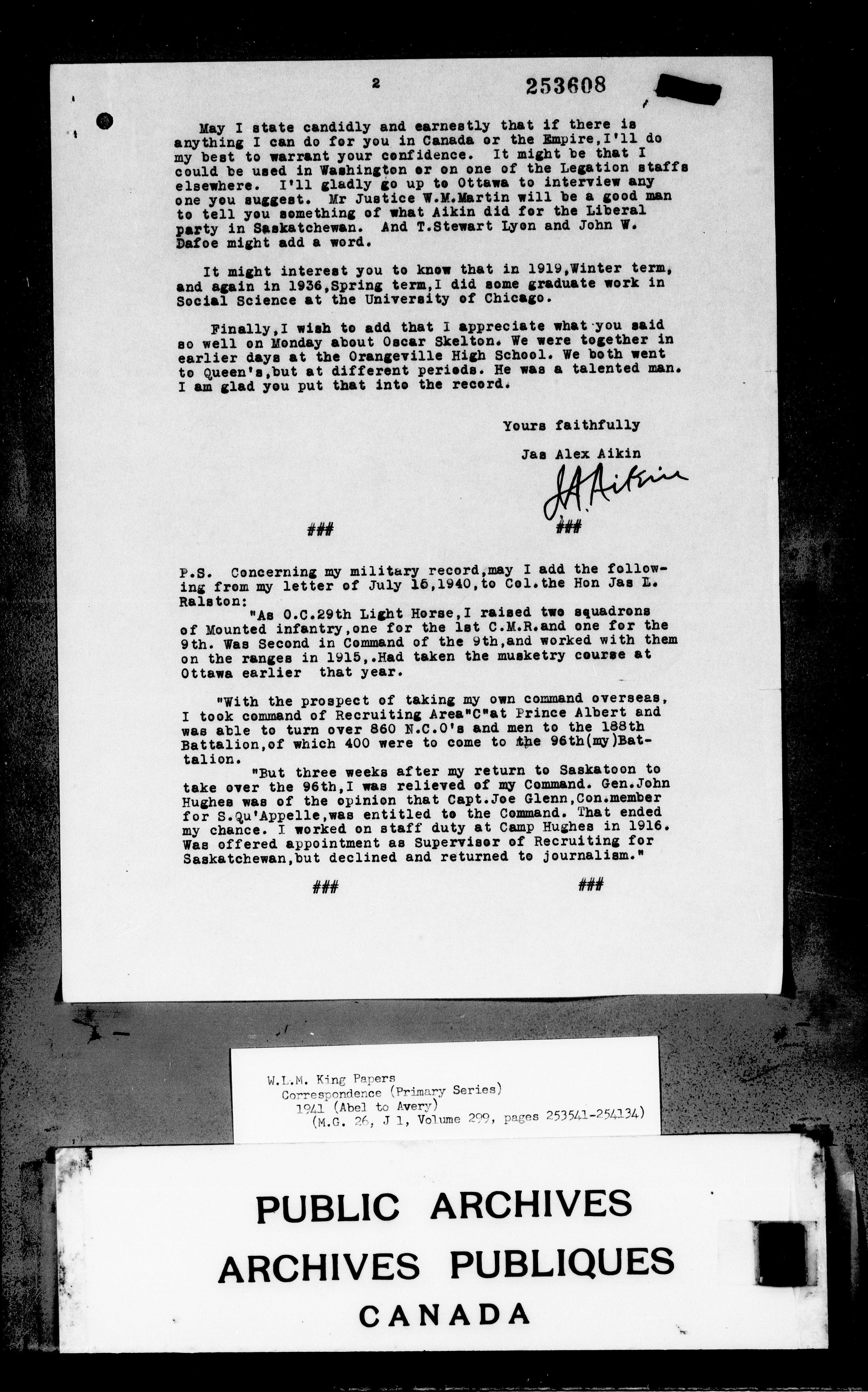 William Lyon Mackenzie King : Primary series correspondence (J1) - 4860