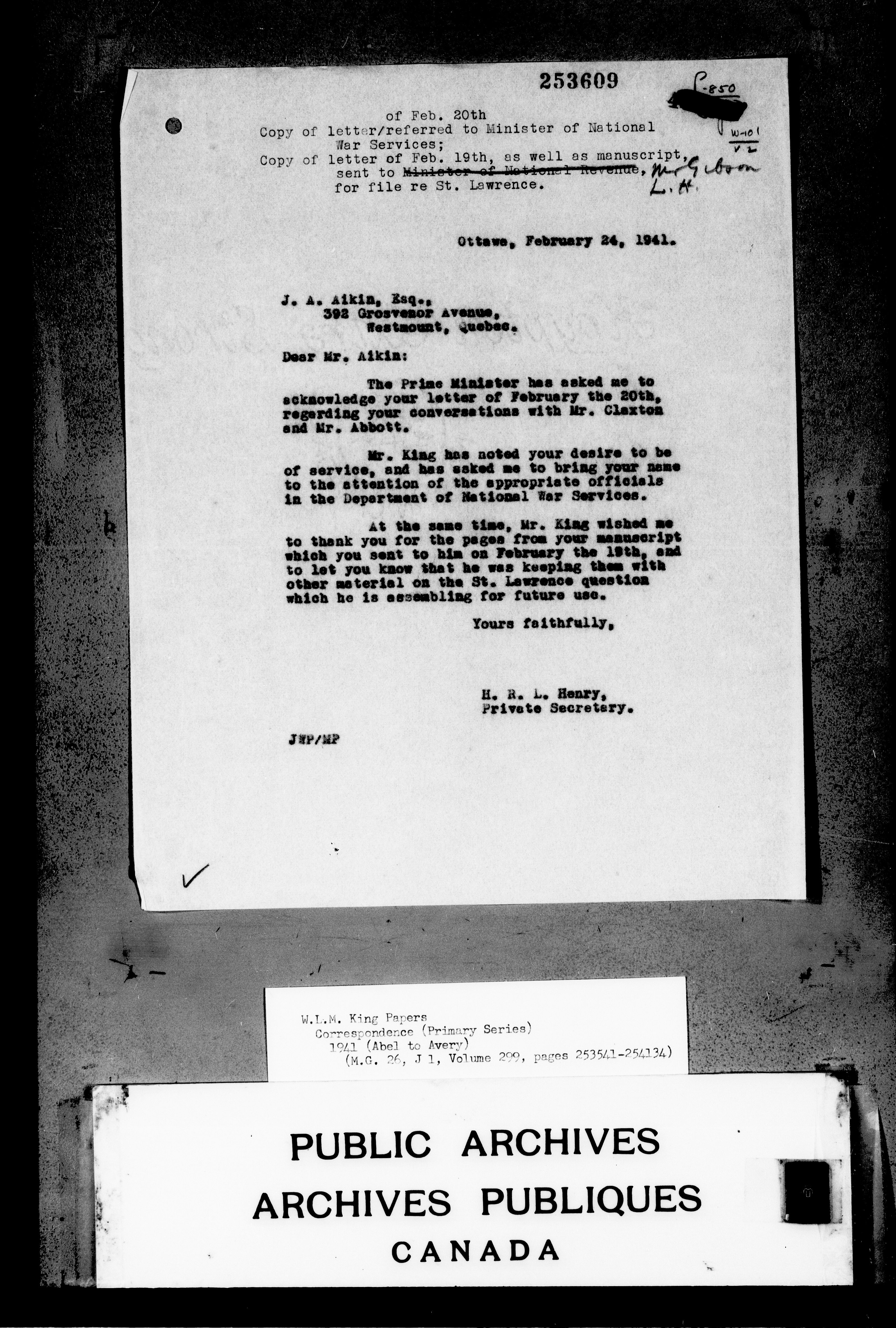 William Lyon Mackenzie King : Primary series correspondence (J1) - 4860