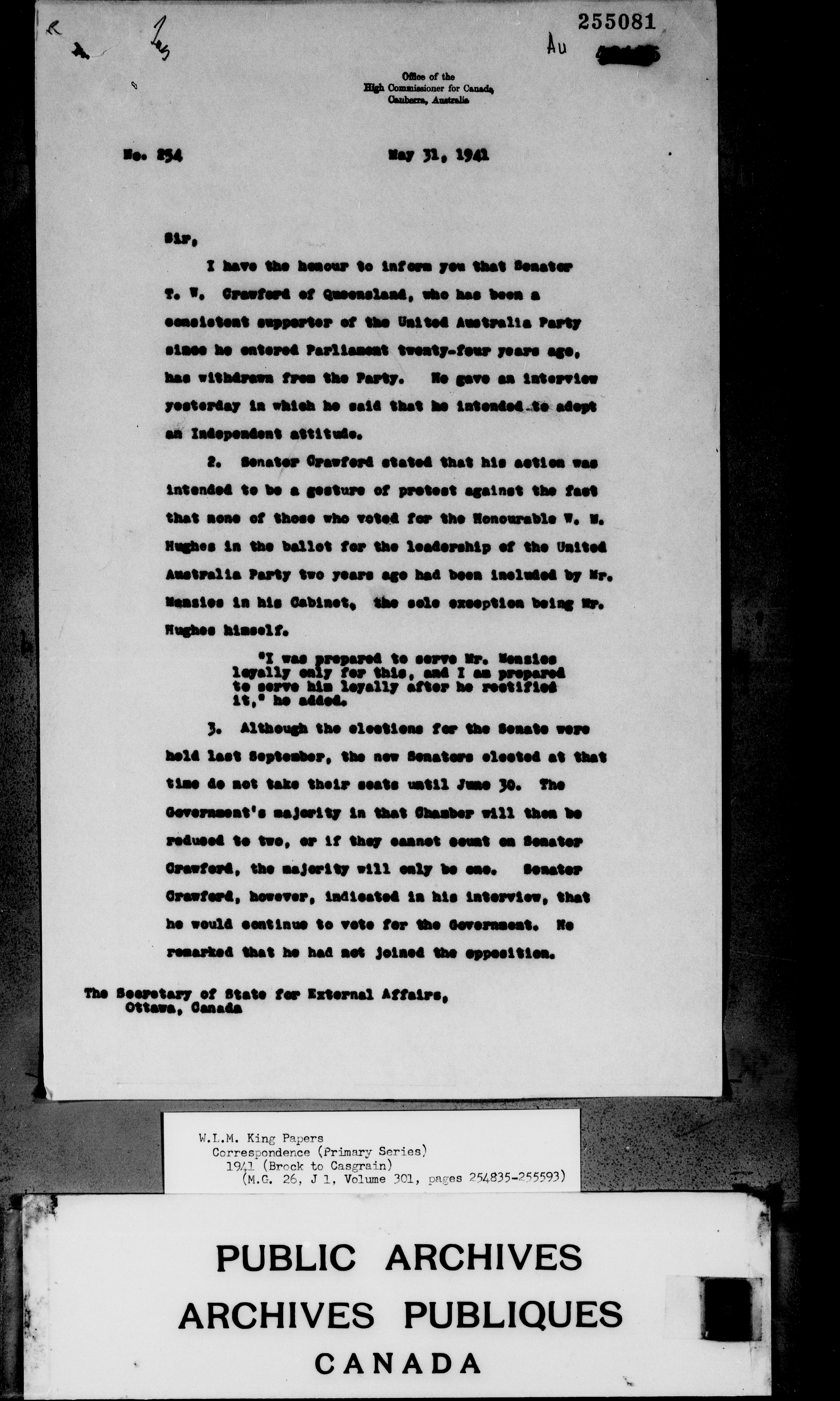 William Lyon Mackenzie King : Primary series correspondence (J1) - 4861