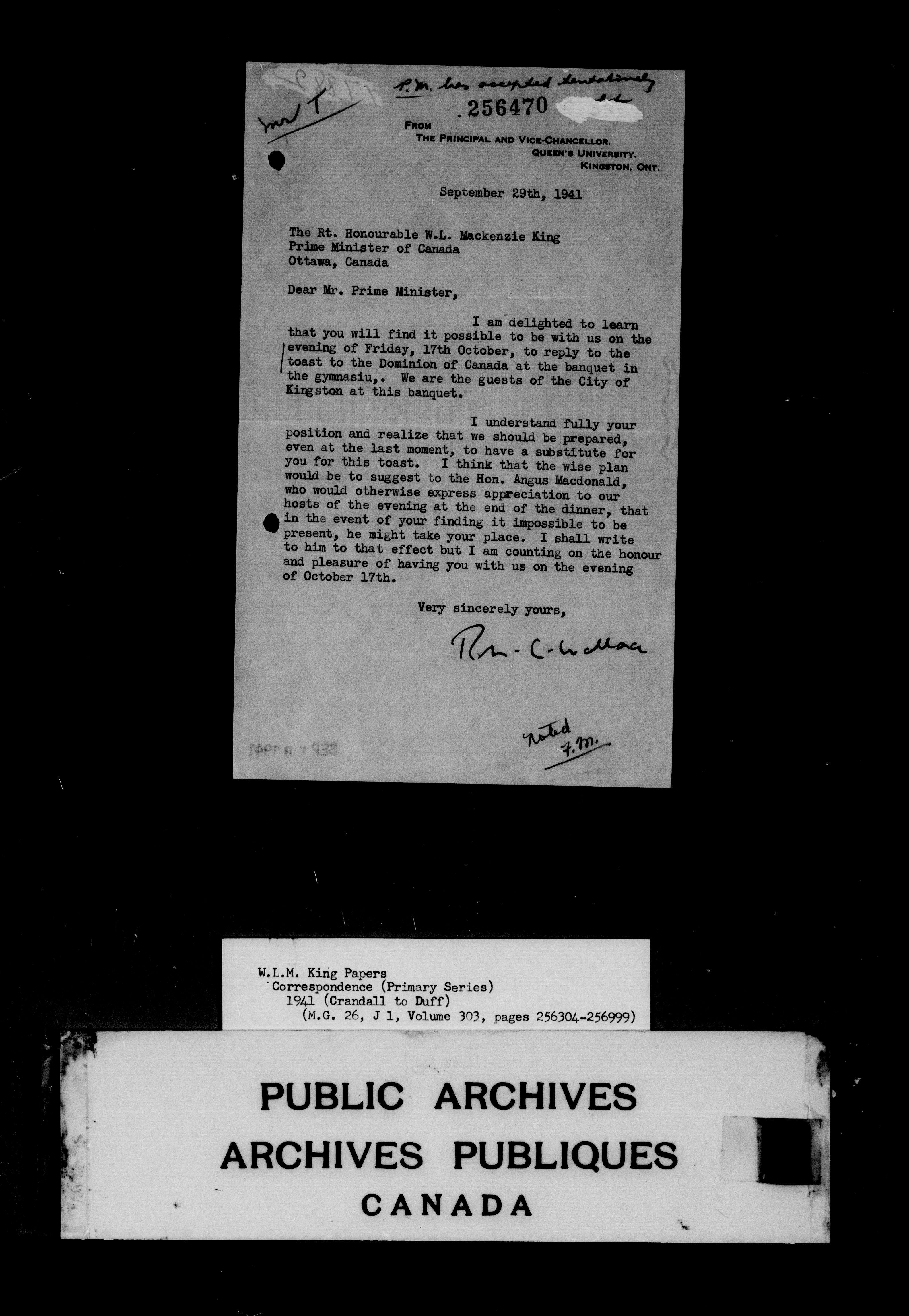 William Lyon Mackenzie King : Primary series correspondence (J1) - 4862