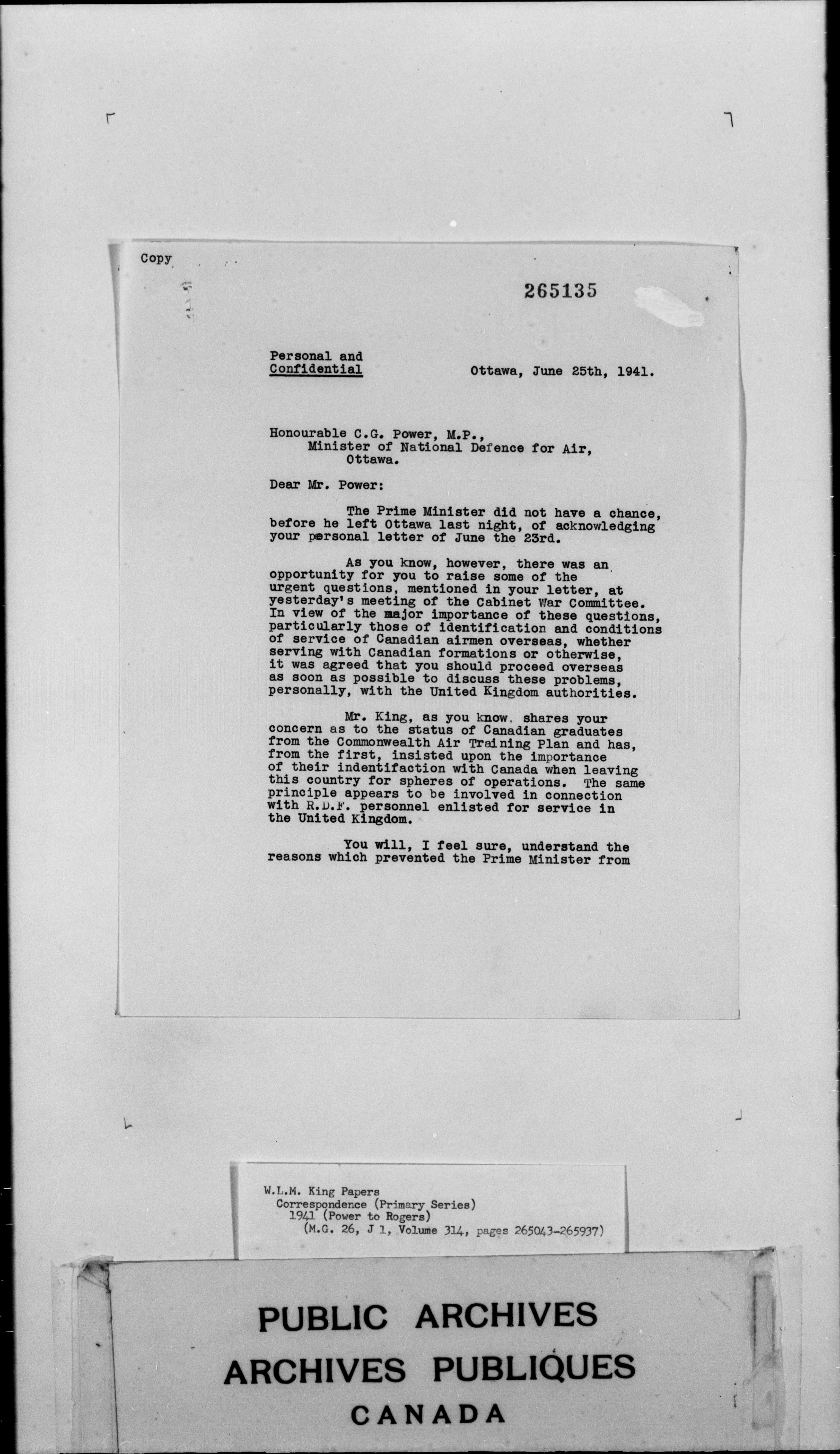 William Lyon Mackenzie King : Primary series correspondence (J1) - 4867