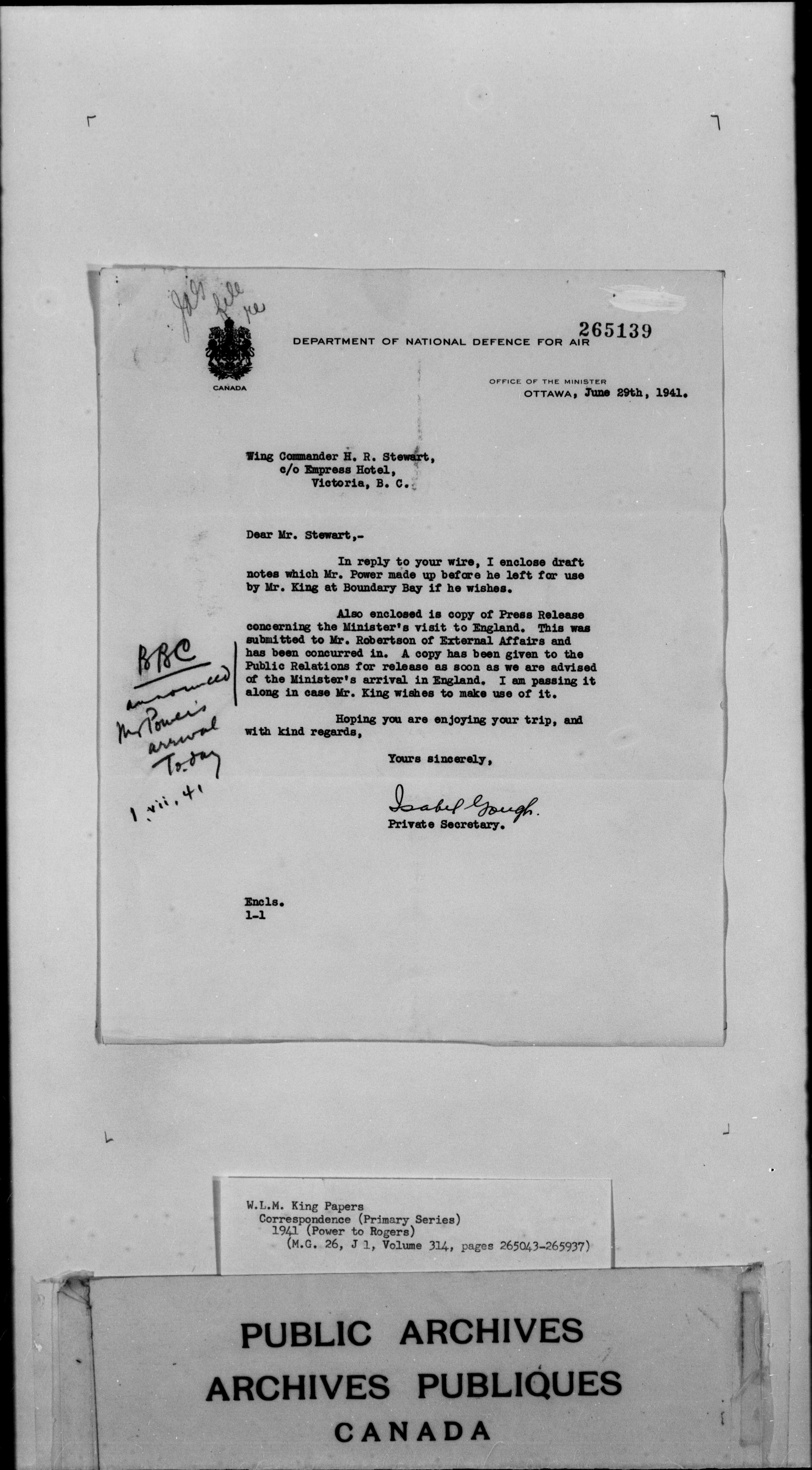 William Lyon Mackenzie King : Primary series correspondence (J1) - 4867