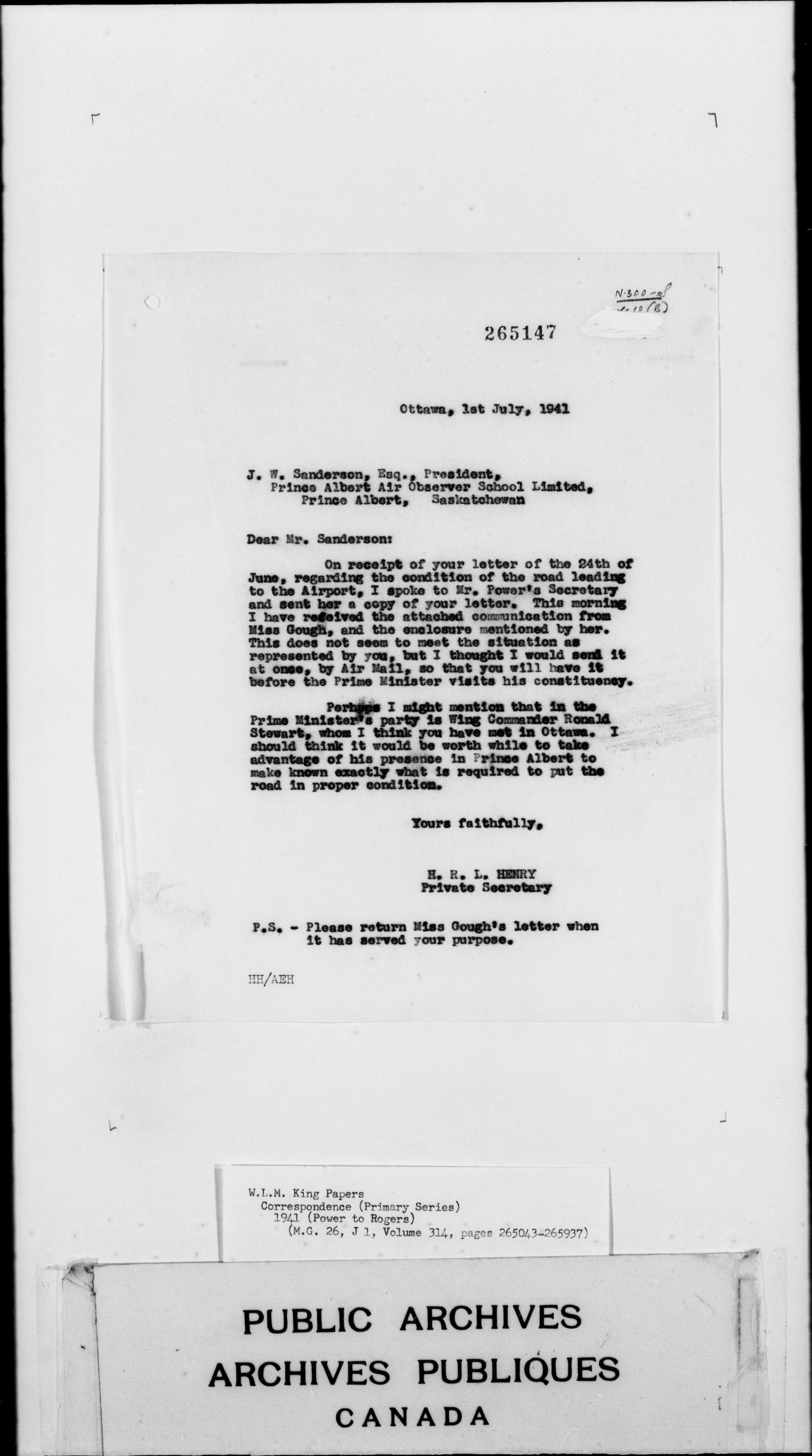 William Lyon Mackenzie King : Primary series correspondence (J1) - 4867