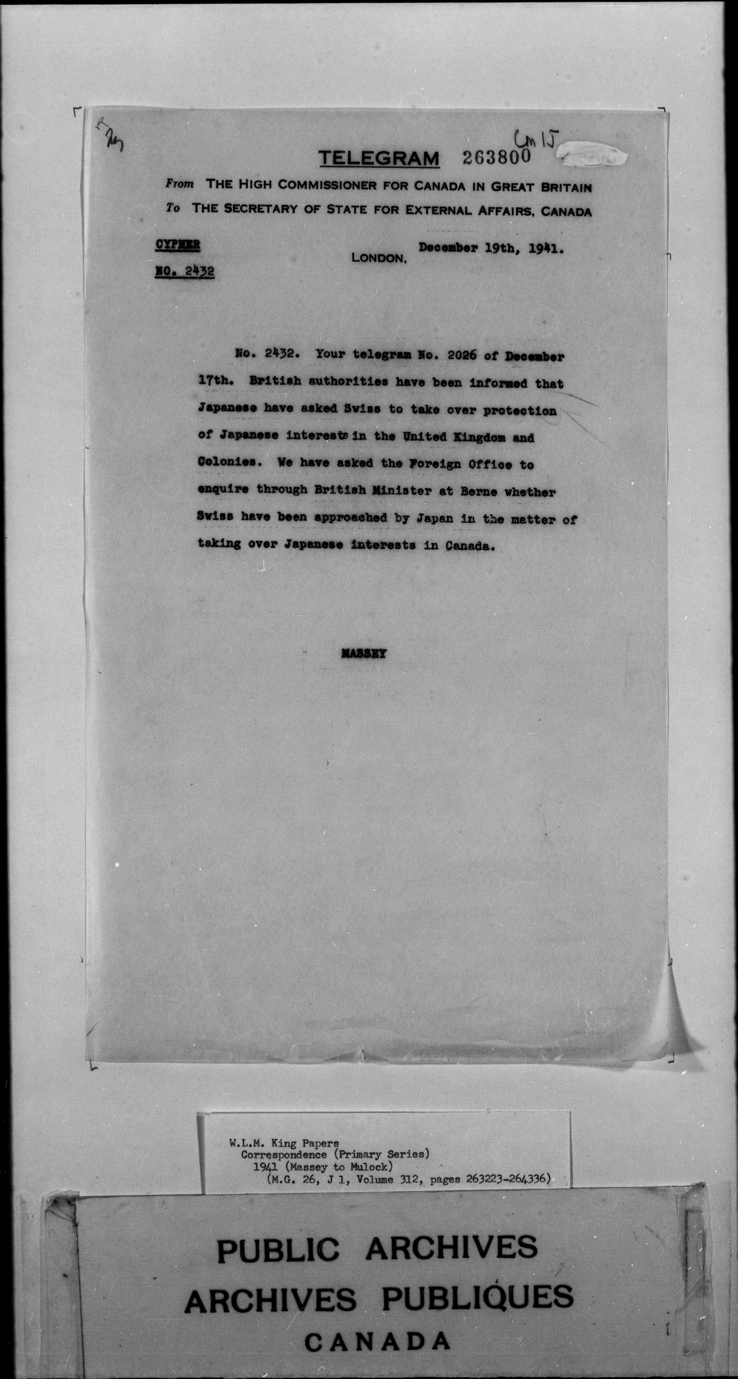 William Lyon Mackenzie King : Primary series correspondence (J1) - 4867