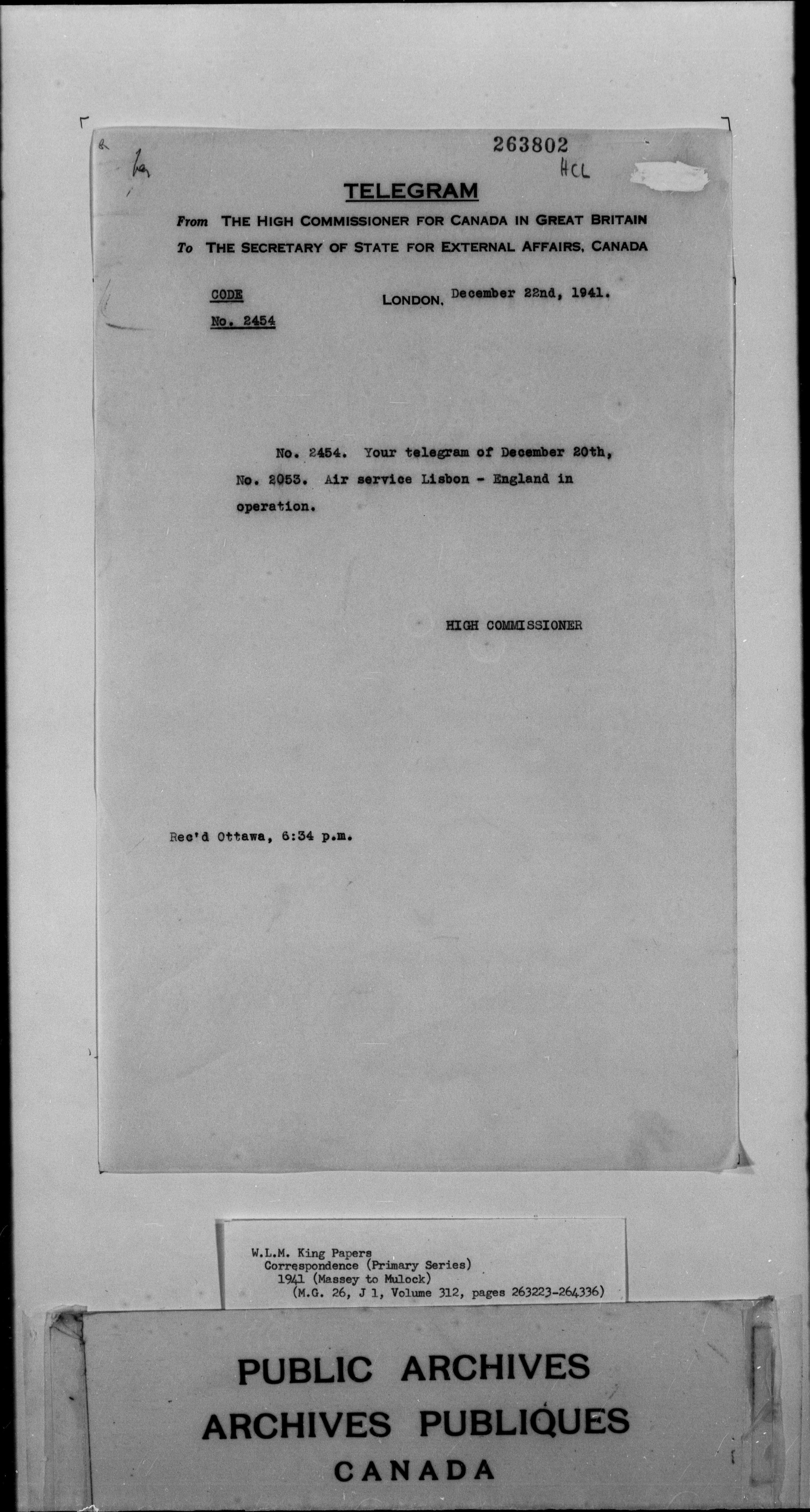 William Lyon Mackenzie King : Primary series correspondence (J1) - 4867