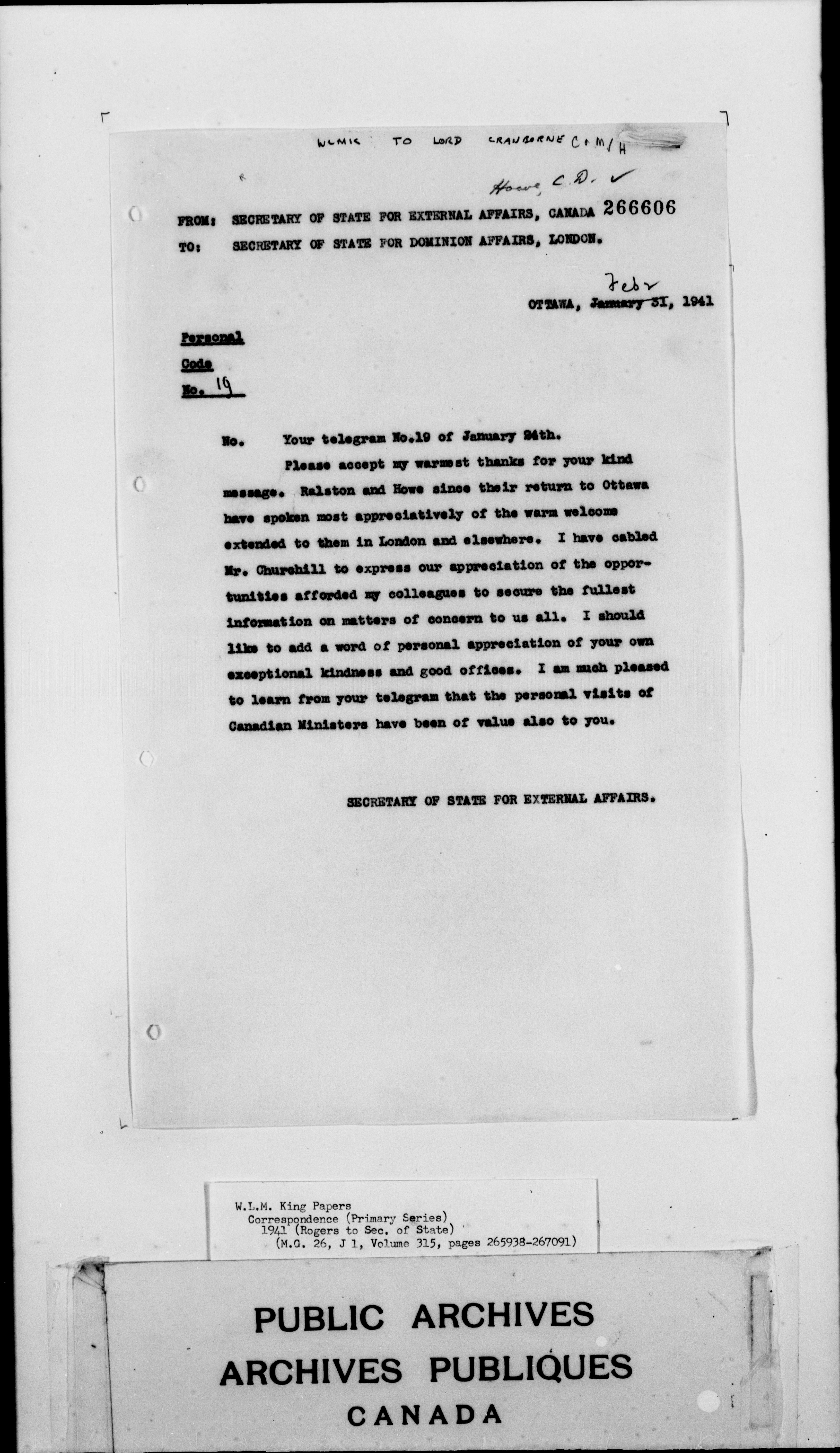 William Lyon Mackenzie King : Primary series correspondence (J1) - 4868
