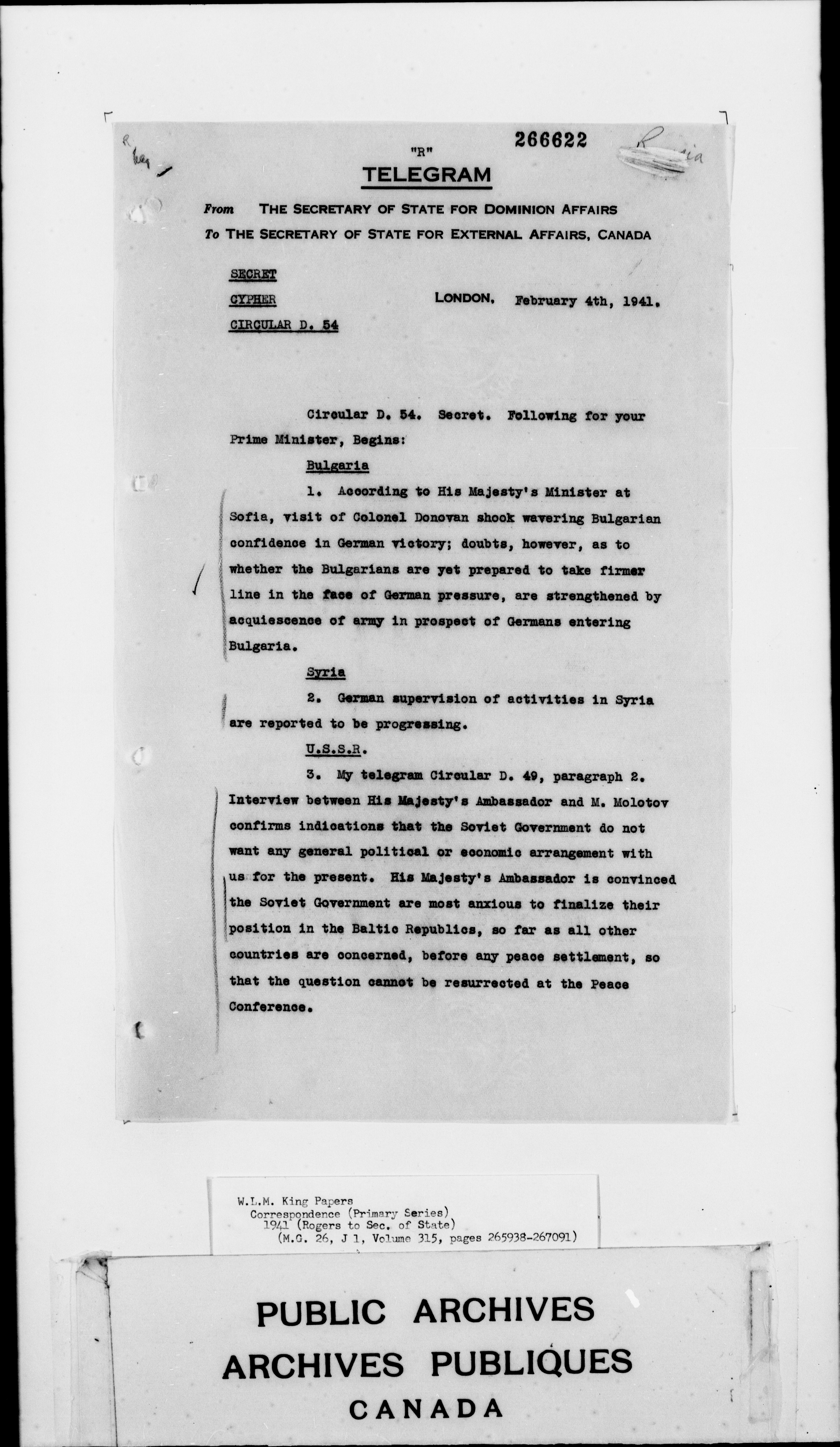 William Lyon Mackenzie King : Primary series correspondence (J1) : C-4868