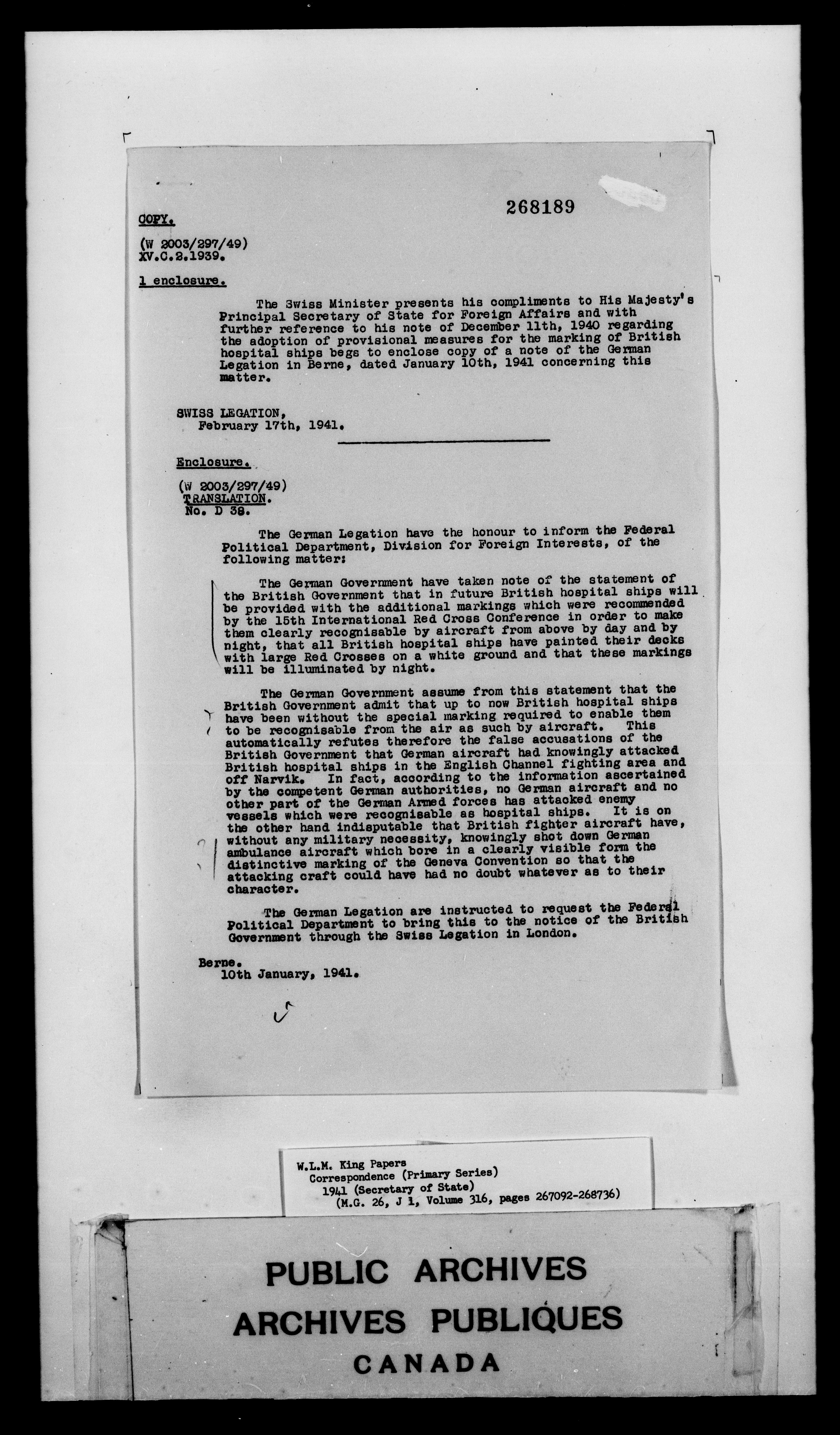 William Lyon Mackenzie King : Primary series correspondence (J1) - 4870