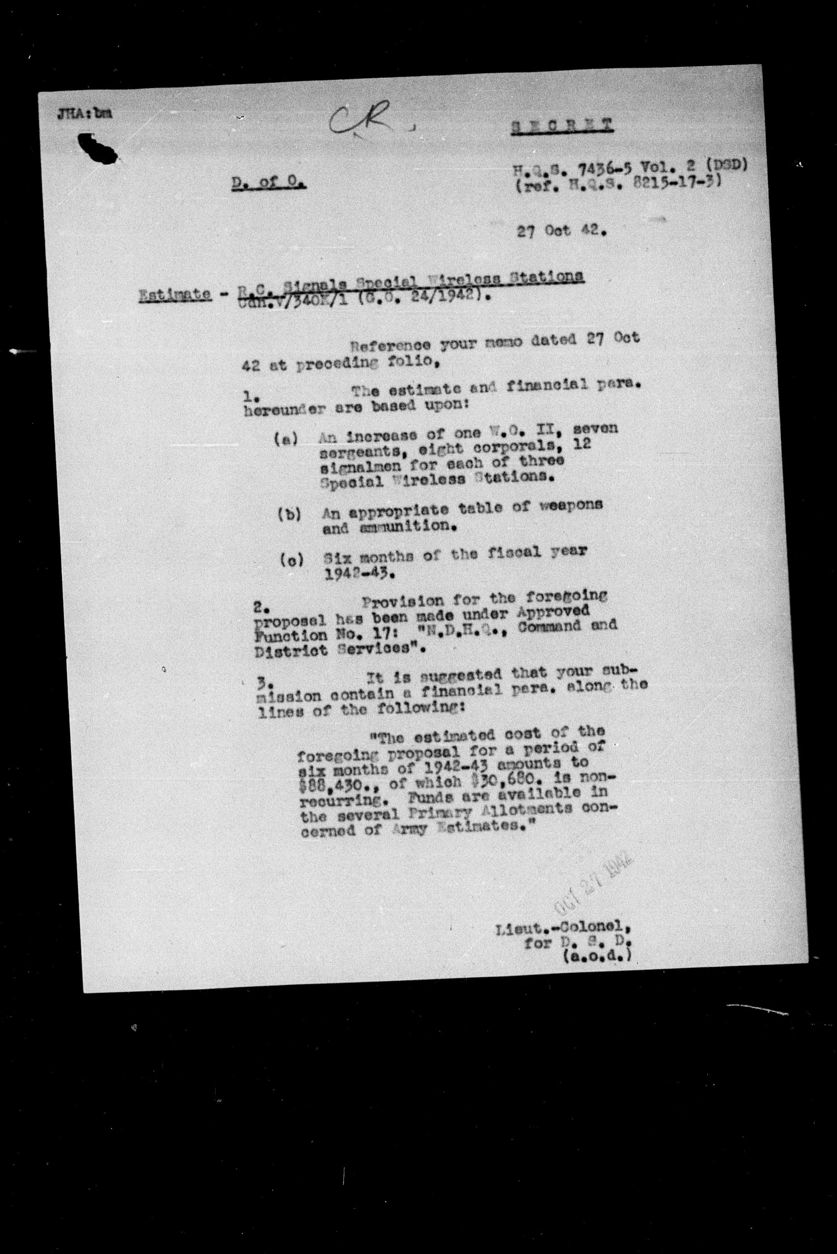 Department of National Defence : 1903 Headquarters Central Registry, subject files, 1866-1950 : C-5030