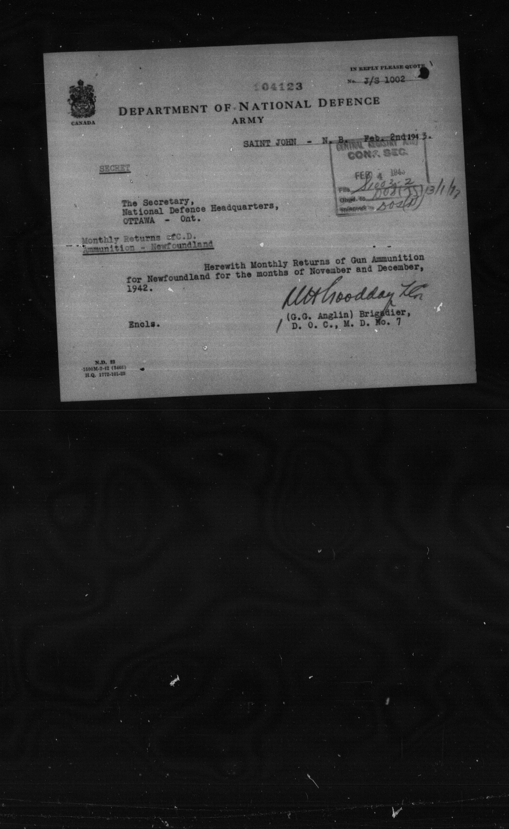1903 Headquarters Central Registry, subject files - 5057