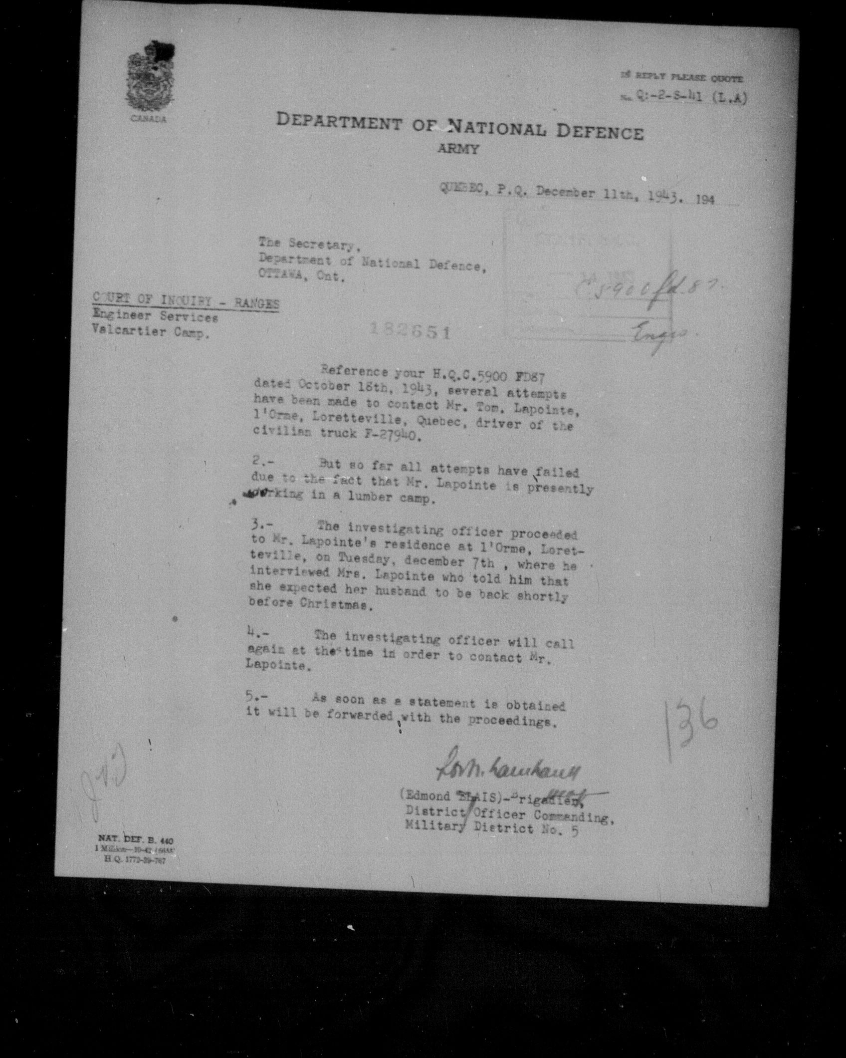 Department of National Defence : 1903 Headquarters Central Registry, subject files, 1866-1950 : C-5086
