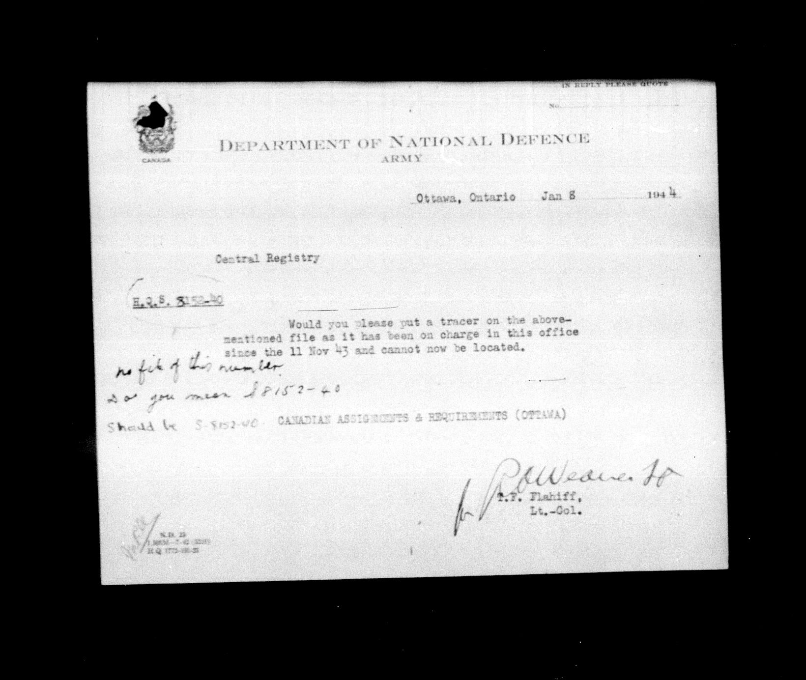 1903 Headquarters Central Registry, subject files - 5148
