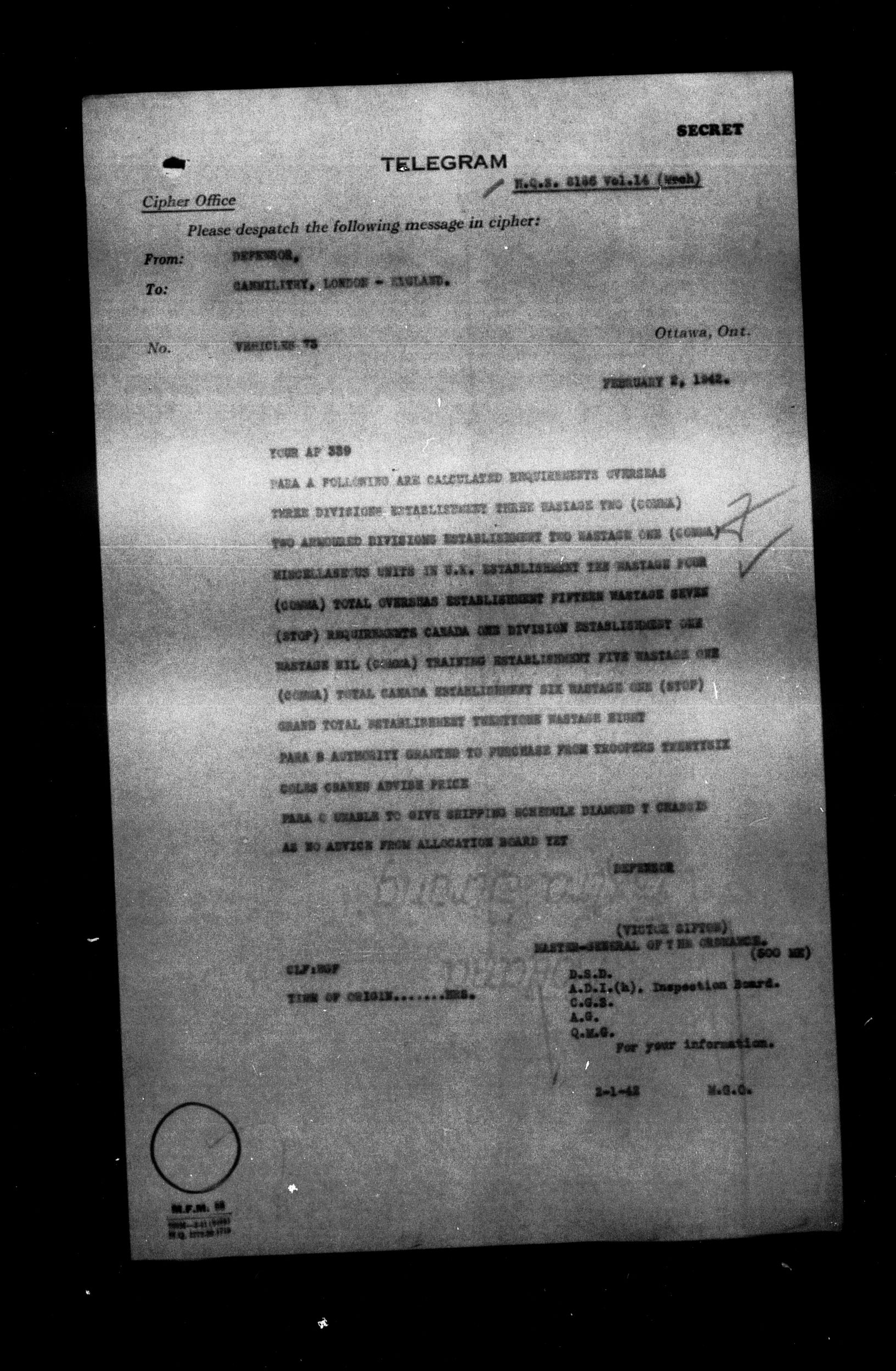 Department of National Defence : 1903 Headquarters Central Registry, subject files, 1866-1950 : C-5153