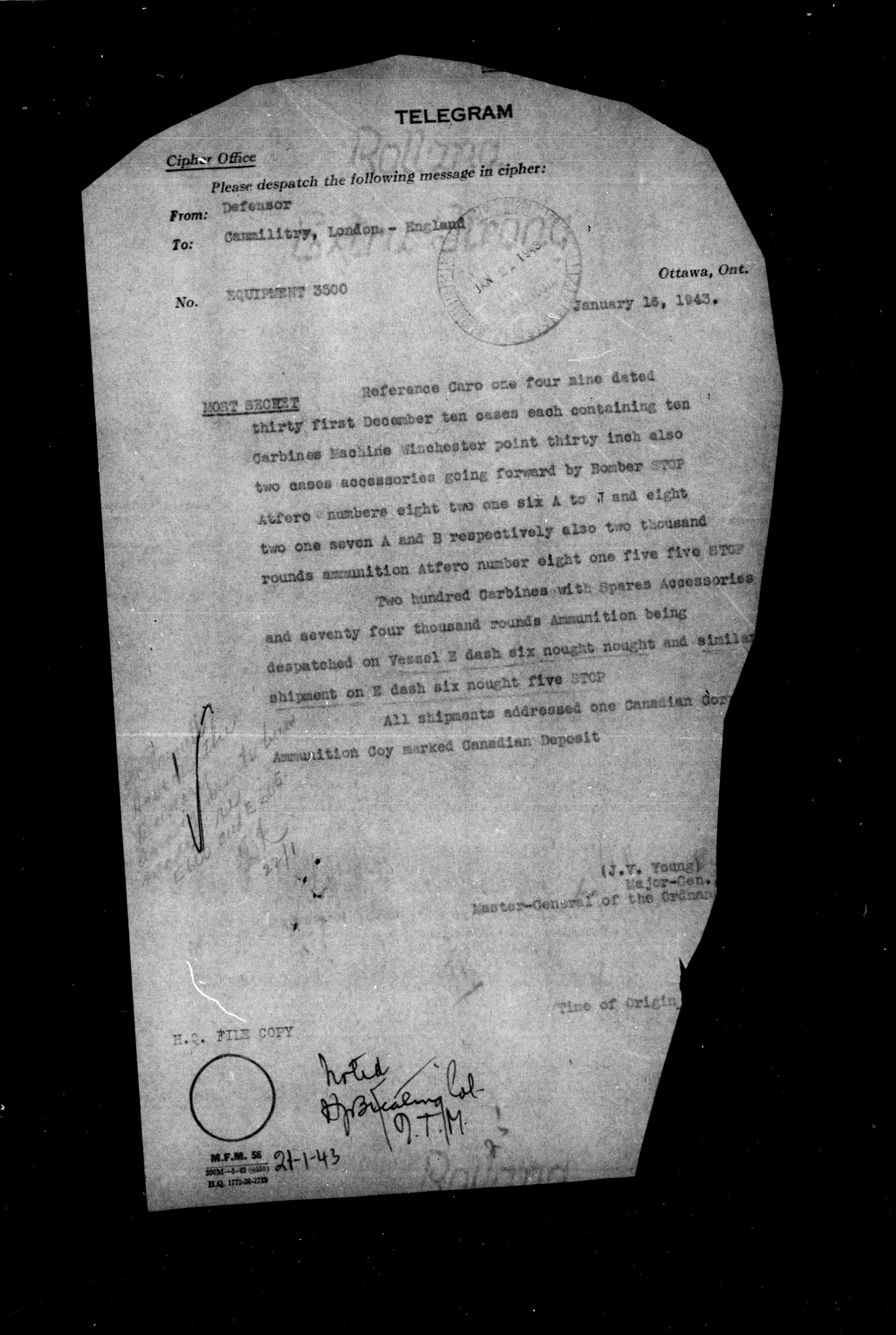 Department of National Defence : 1903 Headquarters Central Registry, subject files, 1866-1950 : C-5243