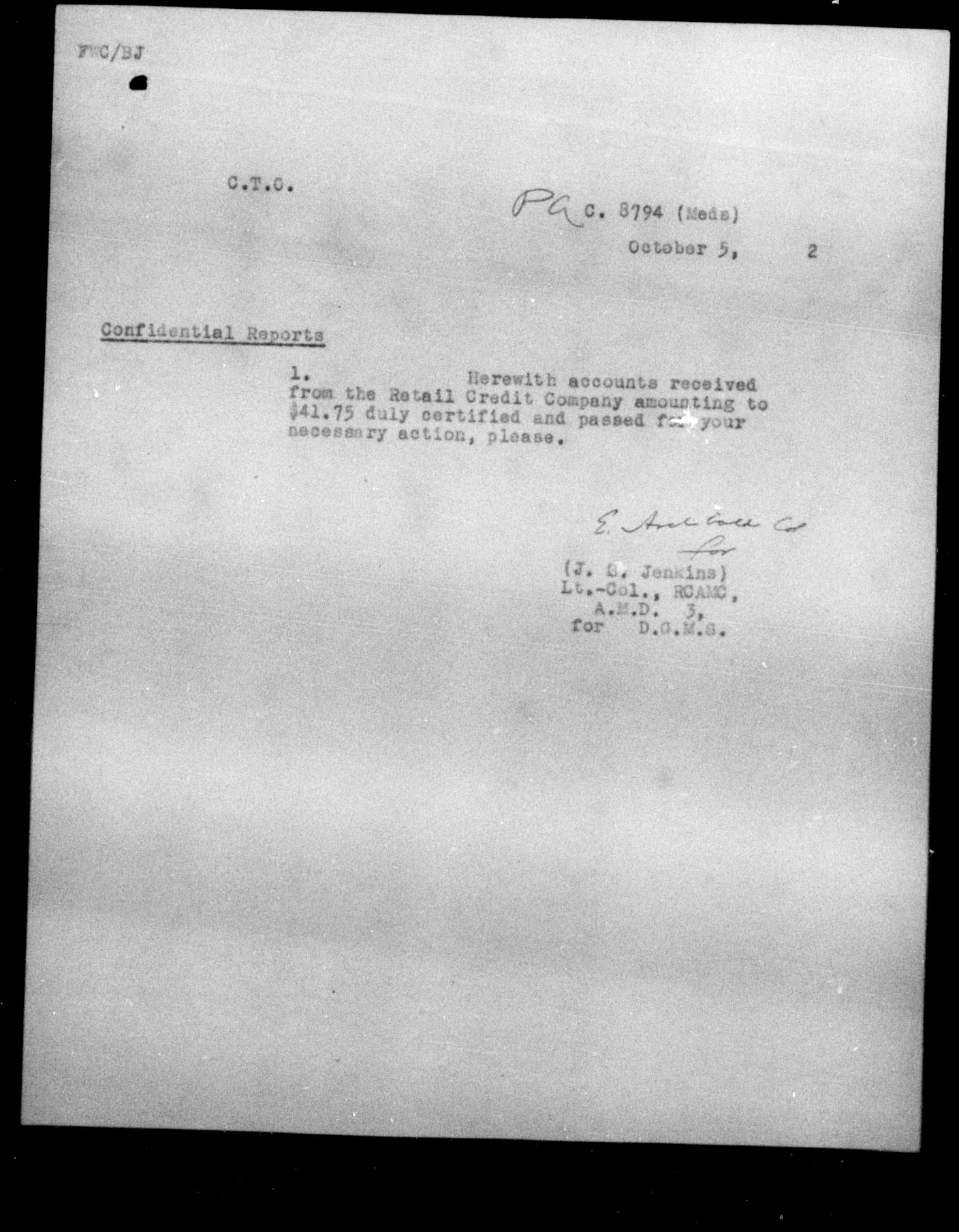 Department of Militia and Defence - Central Registry System - 5271