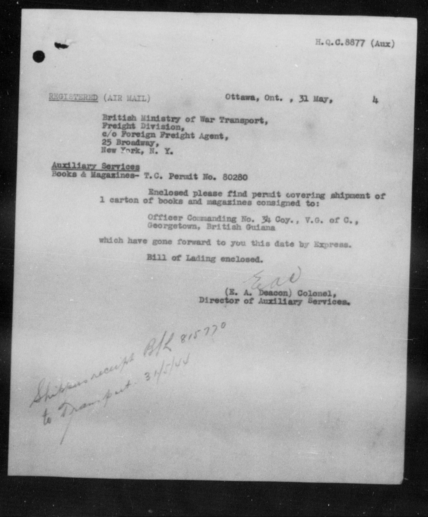 Department of Militia and Defence - Central Registry System - 5283